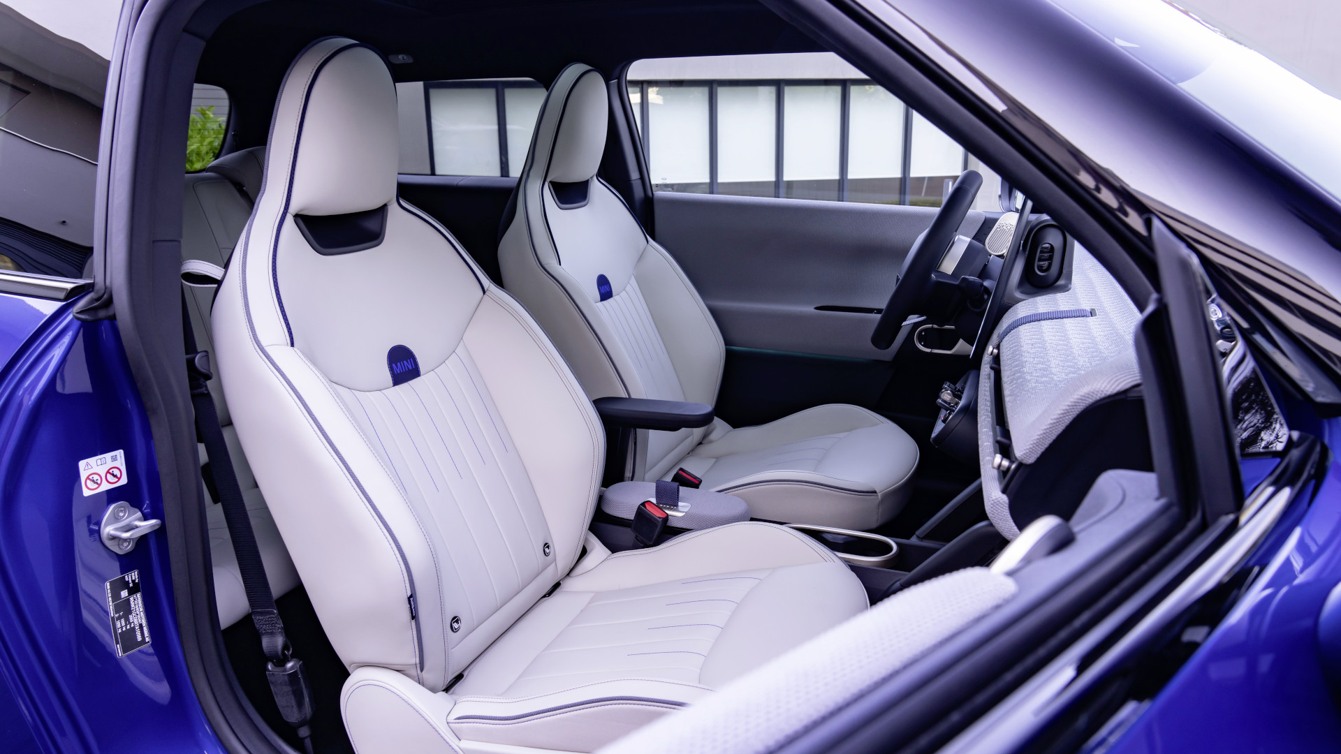Auf den Vordersitzen stellt sich eine bequeme Sitzposition ein, weil die Sportsitze im Vergleich zum ersten Mini Cooper Electric größer und breiter ausfallen. Die Schultern finden gut Halt im Sitz. Die Kopfstütze sitzt manchem etwas zu sehr im Nacken.