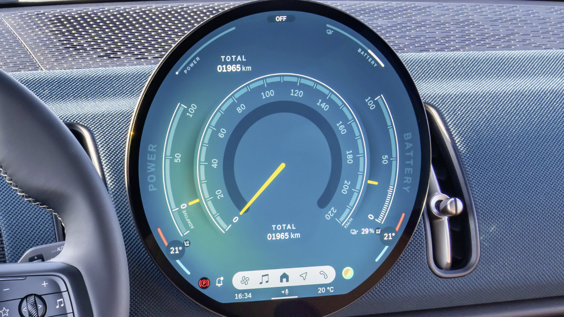 Das Zentralinstrument ersetzt im Mini Countryman III ein pizzarunder Bildschirm. Die Pizza ist eine ohne Karton. In der zweiten Countryman Generation wurde der rechteckige Bildschirm von einem runden Kunststoffgehäuse umrundet, jetzt ist er tatsächlich rund. Und superschick. Der Screen misst 24 Zentimeter im Durchmesser. Über ihn geht fast alles vonstatten. Und dies ist auch sein Problem.