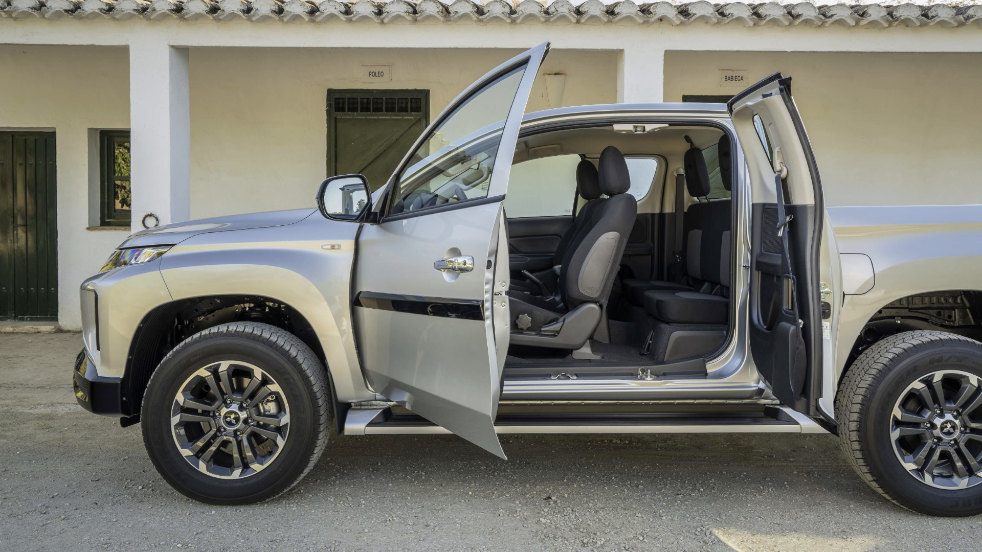 Typisch Pick-up ist der L200 mit oder ohne Doppelkabine erhältlich. Je nachdem fällt die Ladefläche etwas größer oder kleiner aus. Gleich bleibt jedoch die Passagier:innen-Anzahl. In beiden Konfigurationen finden fünf Personen Platz. Bei der Doppelkabine können Mitfahrende über eine separate Tür einsteigen, ohne müssen sie auf ihre Sitze klettern.