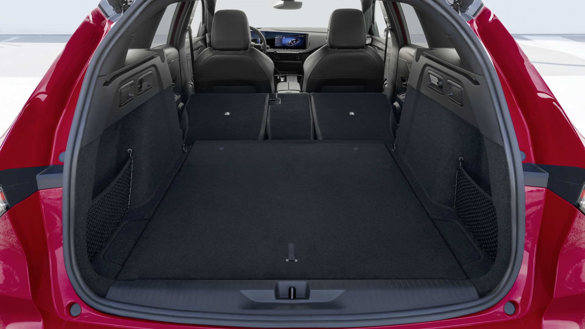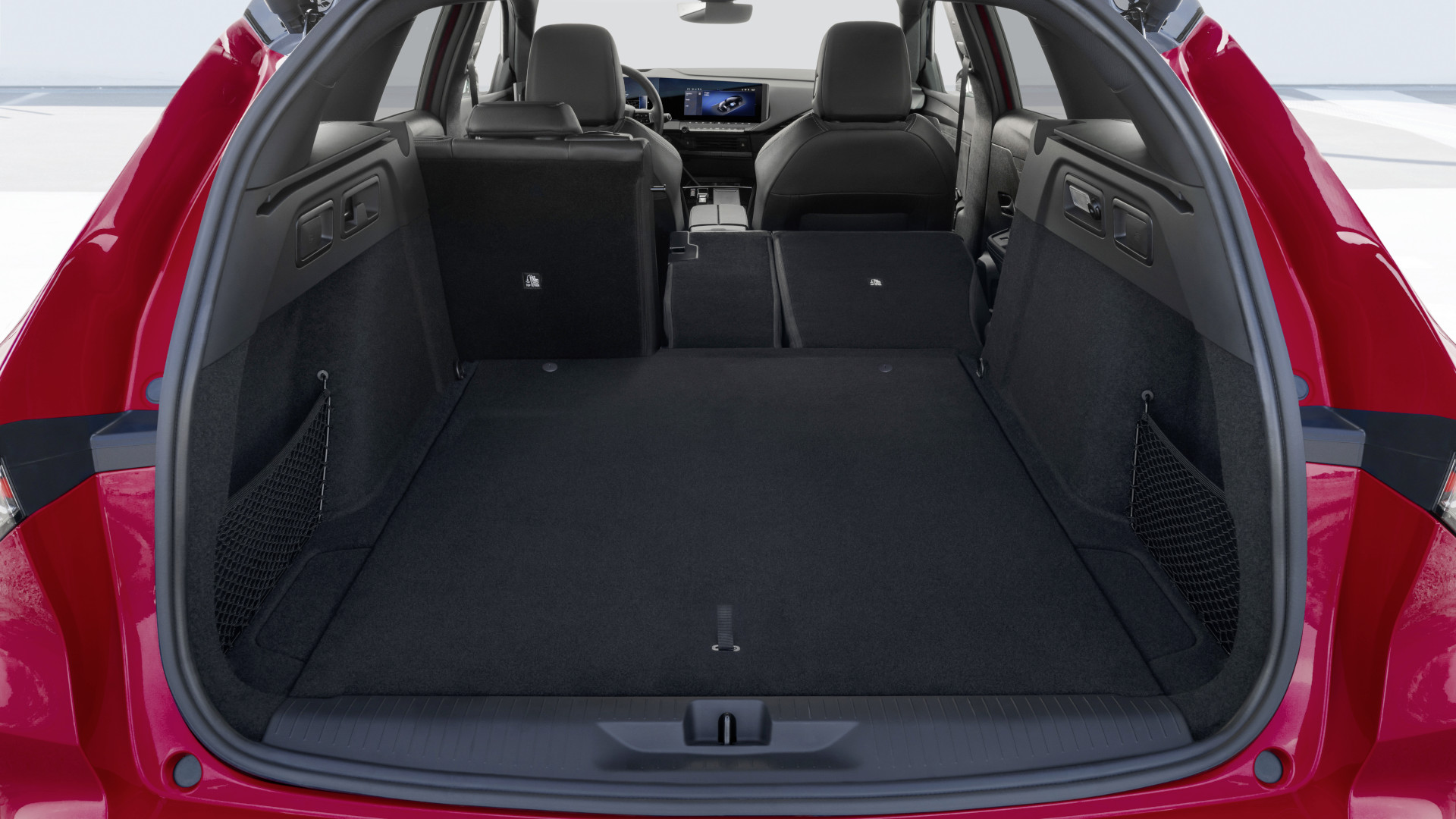 Der Laderaum wächst gegenüber dem Astra Electric in der Länge von 770 auf 1.026 Millimeter. Er fällt mit 1.032 statt 1.020 Millimeter zwar nur etwas breiter zwischen den Radkästen aus, aber bei flach gelegter Banklehne deutlich länger mit 1.850 statt 1.589 Millimeter. Das Einladen geschieht dank der 60 Zentimeter niedrigen Ladekante locker und bequem. Und viel passt hinein. Nicht ganz so viel wie im Astra Sports Tourer mit konventionellem Antrieb (597 bis 1.634 Liter), jedoch mehr als im Astra Electric Fünftürer (352 bis 1.268 Liter). Mit 516 bis 1.553 Litern Kofferraumkapazität lässt sich gut leben und reisen.