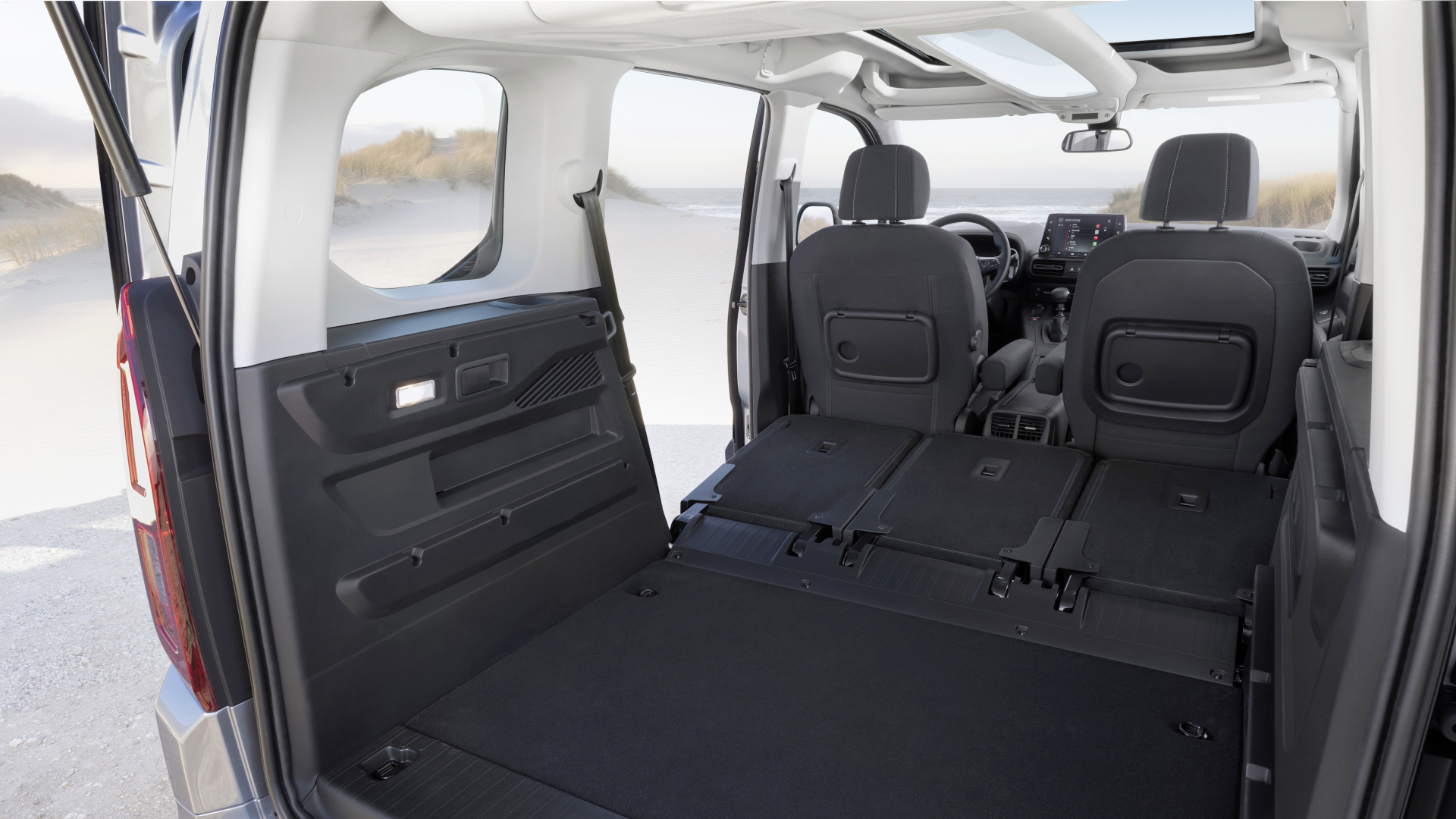 In der mittleren Ausstattungsvariante gehen eine manuelle Klimaanlage und die Schiebetür auf der Fahrer- und Beifahrerseite mit an Bord. Das obere Fach des innen geteilten Handschuhfachs ist gekühlt. Genauso zählen der 6-fach verstellbare Fahrersitz mit Lendenwirbelstütze und Armlehne sowie das Multimedia-Radio mit 8-Zoll̋-Touchscreen, über welches das Smartphone über Apple CarPlay oder Android Auto eingebunden wird, zu diesem Ausstattungsniveau. Die Heckklappe mit separater Heckscheibe gibt es auf Wunsch ohne Mehrpreis.