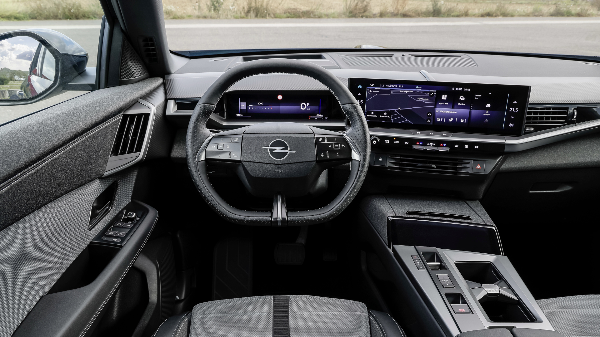 Blickfang des Cockpits im Opel Grandland Hybrid sind die beiden neuen Displays. Der Rüsselsheimer Hersteller verzichtet auf eine durchgehende Leiste, um keine zu große Reizüberflutung zu bieten, heißt es aus dem Konzern. Seltsamerweise gibt es die aber in Modellen wie dem Astra.