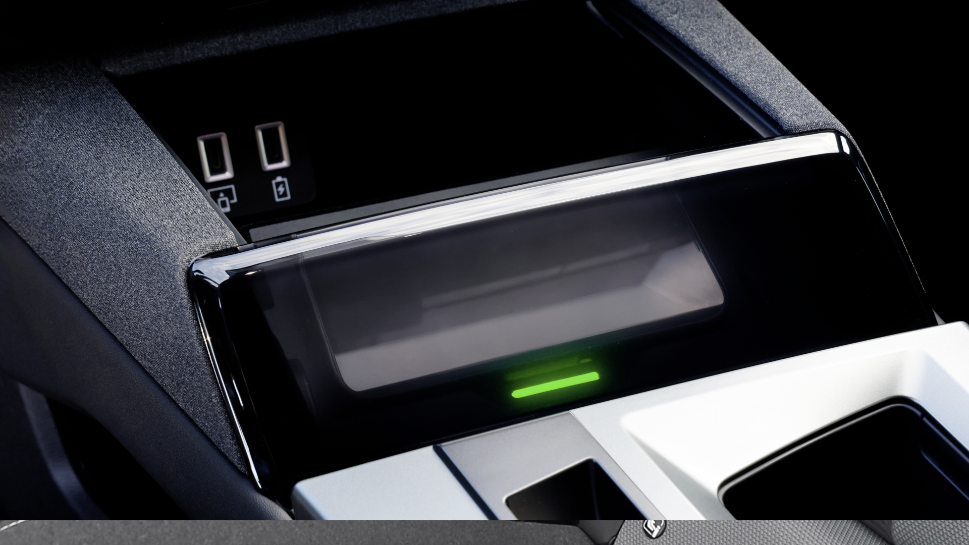 In dem Fach finden sich auch USB-Anschlussbuchsen und gegen Aufpreis eine induktive Ladefläche. Direkt davor gibt es zwei hintereinander positionierte Cupholder, die sich flexibel anpassen lassen. Die Armauflage öffnet sich zweiteilig, darunter ist ein weiteres, sehr tiefes Fach mit einer Einlage versteckt.