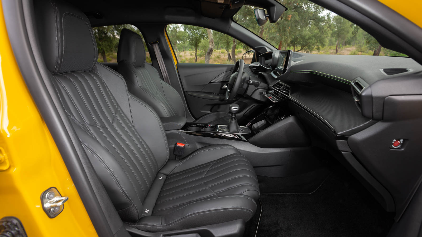 Der GT gibt das Topmodell auf der 208er-Bühne mit zweifarbigen 17-Zoll-Leichtmetallfelgen, stärker getönten hinteren Scheiben, Außenspiegelkappen in glänzendem Schwarz und dem schwarzen Dachhimmel.