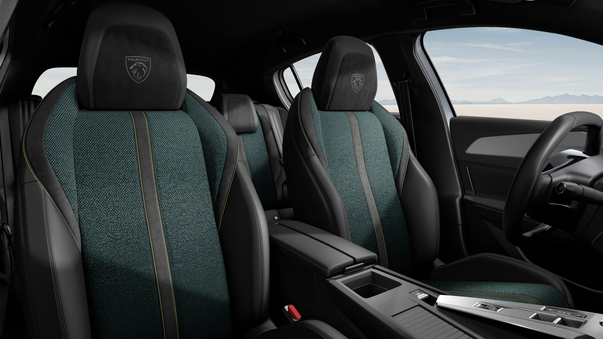 Die im e-308 SW Allure und GT mit Stoff und Kunstleder und im GT optional mit Alcantara, Stoff und Kunstleder bezogenen Vordersitze sehen nicht nur nach Bequemlichkeit und gutem Seitenhalt aus. Sie bieten beides. Im e-308 SW GT gegen Aufpreis zudem mit dem vollen Wohlfühlprogramm mit Heizung, ausziehbarer Oberschenkelauflage und Massageprogrammen.