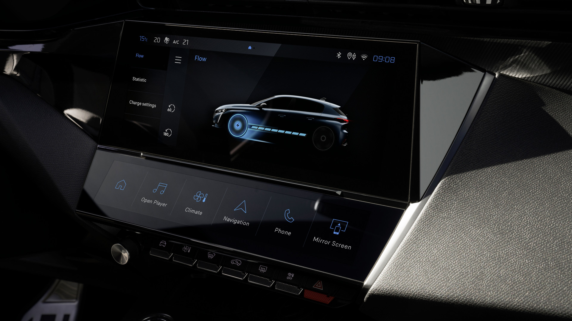 Im e-308 SW GT sorgen zusätzlich die vorderen Parksensoren für mehr Sicherheit und die LED-Matrix-Scheinwerfer statt der LED-Scheinwerfer für eine noch bessere Ausleuchtung der Fahrbahn.