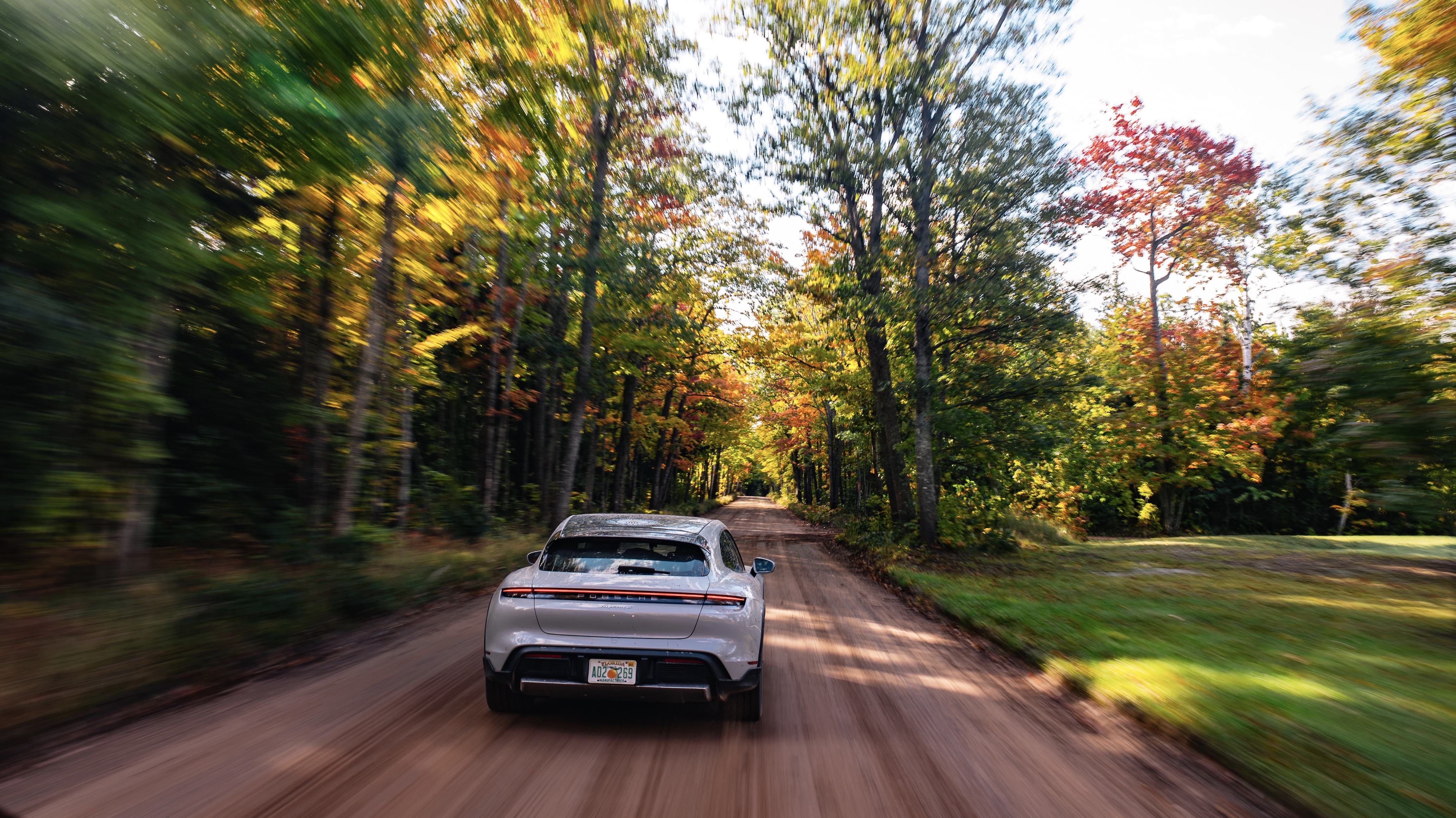 Die Modellbezeichnung mit dem Zusatz Cross Turismo klingt nach großem Rallye-Sport. Klar, der Porsche macht mit seiner Kunststoffbeplankung ein wenig auf SUV und Allradantrieb ist hier auch immer mit an Bord. Irre schnell über Schotterpisten pesen ist mit Sicherheit kein Problem im Taycan Cross Turismo, doch für das echte Gelände zeigt sich der Porsche dann doch nicht gerüstet.