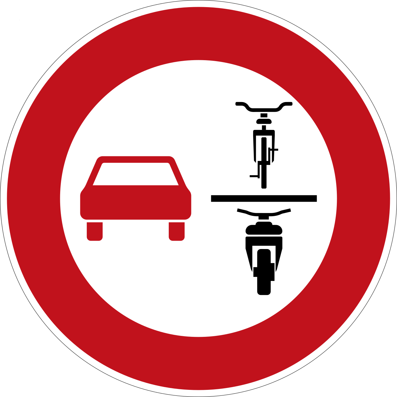 Dieses Verkehrsschild ist recht neu dabei und bedeutet konkret das “Verbot des Überholens von einspurigen Fahrzeugen für mehrspurige Kraftfahrzeuge und Krafträder mit Beiwagen”, kurzum: Wenn Sie dieses Schild sehen, gilt ein Zweiräder-Überholverbot.
