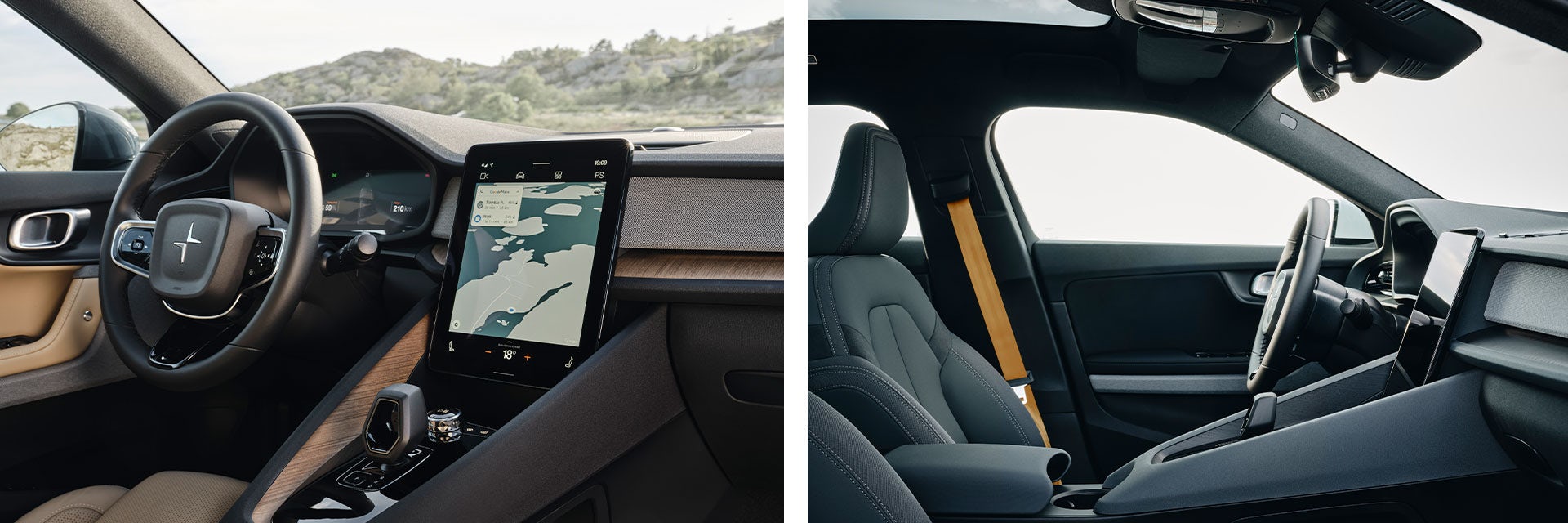 Zu diesen kleinen Gefälligkeiten gehören beispielsweise die LED-Lichter in Form von Thors Hammer (denn irgendwo muss ja die Firmenverwandschaft mit Volvo verankert werden), das elegante und nicht zu auffällig platzierte Markenlogo sowie die im Kühlergrill untergebrachten Quadratstrukturen, die etwas an einen stylischen Retro-Topflappen erinnern. Der “Kühlergrill” ist übrigens eine Art Blender, der den Design-Umstieg auf das Elektroauto erleichtern soll – die verbauten Batterien bedürfen nämlich keiner Luftkühlung, im Gegensatz zu den üblichen Verbrennermotoren.