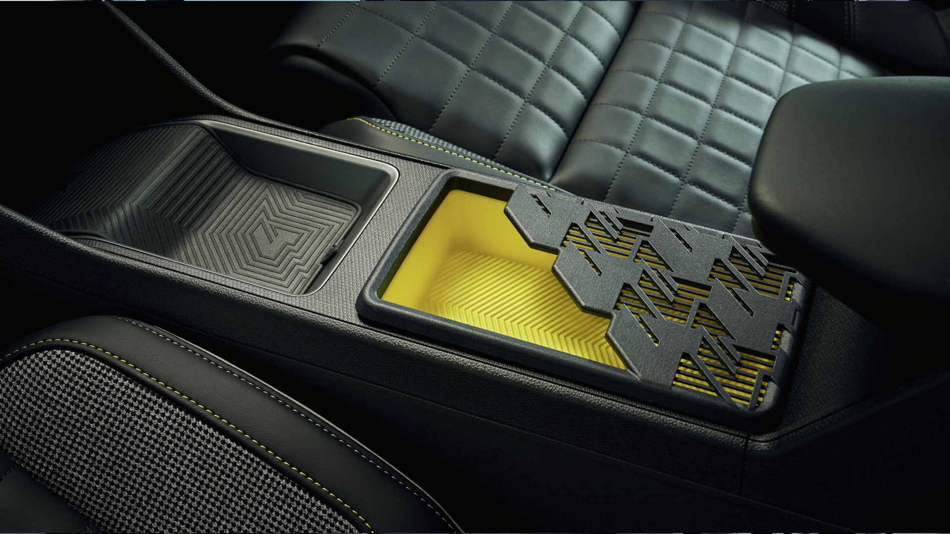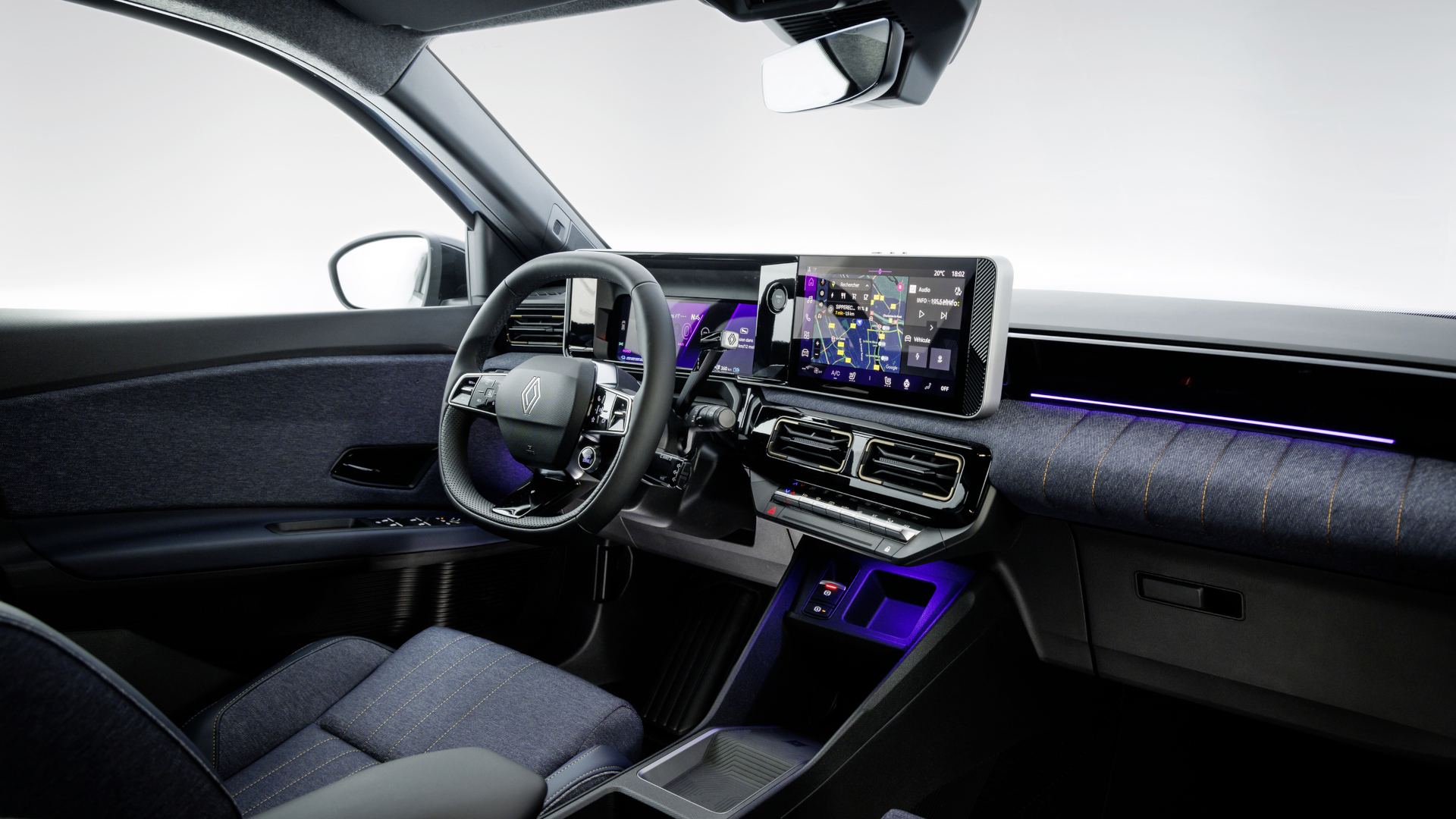 Der Innenraum des Renault 4 E-Tech kombiniert modernes Design mit nachhaltigen Materialien, was dem Fahrzeug eine angenehme Atmosphäre verleiht. Besonders die höheren Ausstattungsvarianten bestechen durch den Einsatz von recycelten Materialien, wie den Sitzen aus Plastikflaschen, sowie durch eine ansprechende Denim-Stoffpolsterung, die dem Cockpit eine frische, aber zugleich zeitlose Note gibt. In den höheren Ausstattungen ist die Innenausstattung durch hochwertige Kunststoffe und Kunstleder besonders ansprechend.