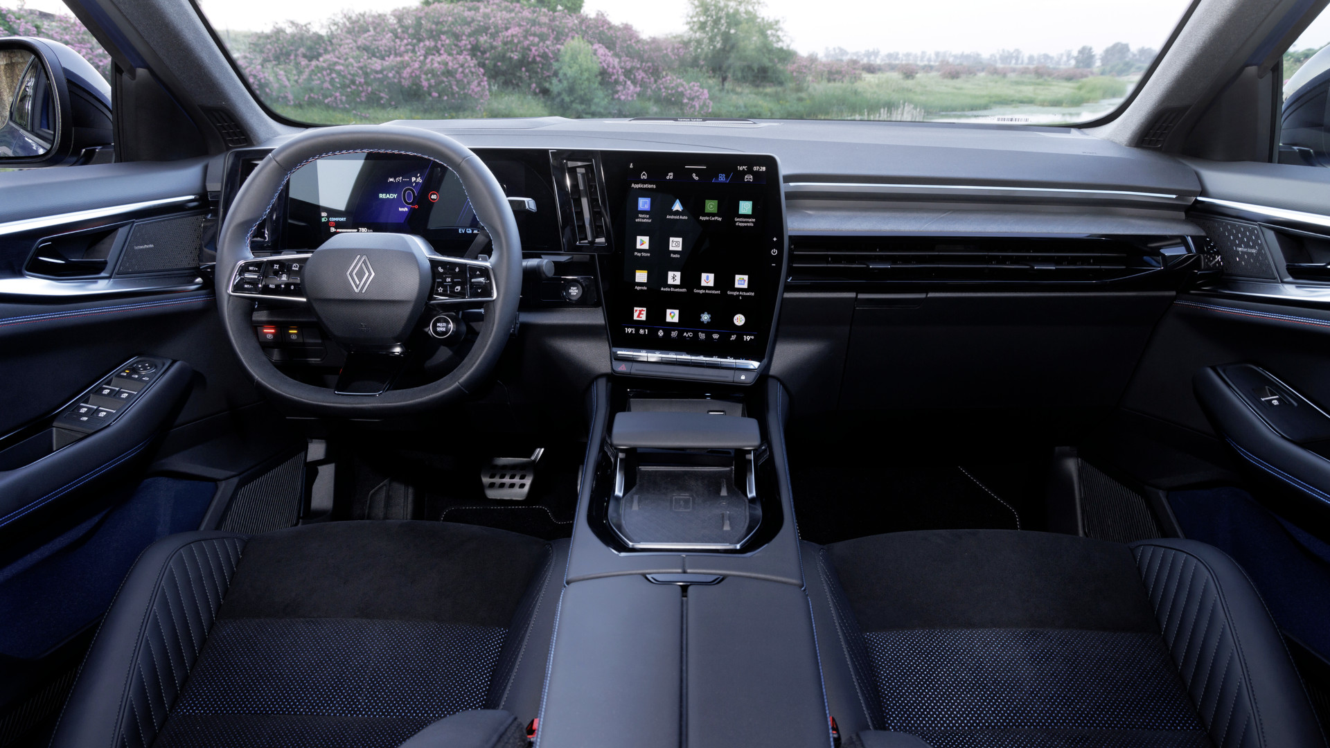 Das Infotainment arbeitet Google basiert. Schnell und flüssig. Die kabelfreie Einbindung des Smartphone über Android Auto oder Apple CarPlay ist flott erledigt, die Google Navigation mit die beste auf dem Markt. Das DAB-Radio (DAB+) gehört ebenso bereits im Basismodell Techno zur Serienausstattung wie die induktive Ladestation fürs Smartphone und die USB-C Anschlüsse vorne und hinten. Mehr als 50 Apps werden im Rafale geboten. Gegen Zuzahlung beschallt ein Soundsystem von Harman Kardon den Innenraum.