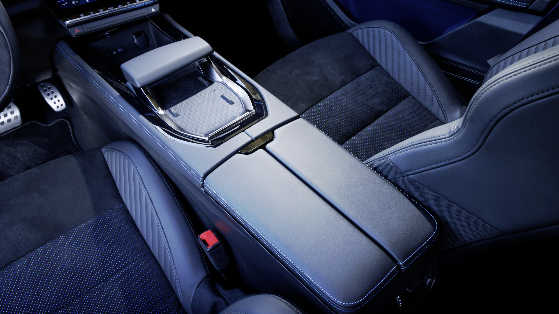 Ein weiteres Novum klappt im Fond aus. Die raffinierte Mittelarmlehne, die im Esprit Alpine zur Serienausstattung zählt, verfügt über eine Tablet-/Smartphone-Halterung, zwei USB-Anschlüsse und Stauraum für mobile Geräte. Das Infotainment präsentiert sich ähnlich durchdacht.