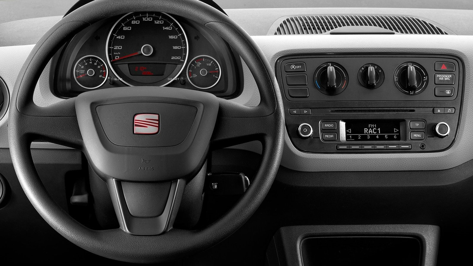 Die Basisausstattung fällt karg aus. Dazu zählen eine 12-Volt-Steckdose vorne, zwei Becherhalter in der Mittelkonsole, der beleuchtete Kofferraum, die Wegfahrsperre und die komplett umlegbare Rücksitzbank und -lehne. Der Mii Reference ist mit der Gepäckraumabdeckung, der Radiovorbereitung mit zwei Lautsprechern, der Dachantenne sowie mit der Sonnenblende auf der Beifahrerseite mit Make-up-Spiegel immer noch einfach ausgestattet.