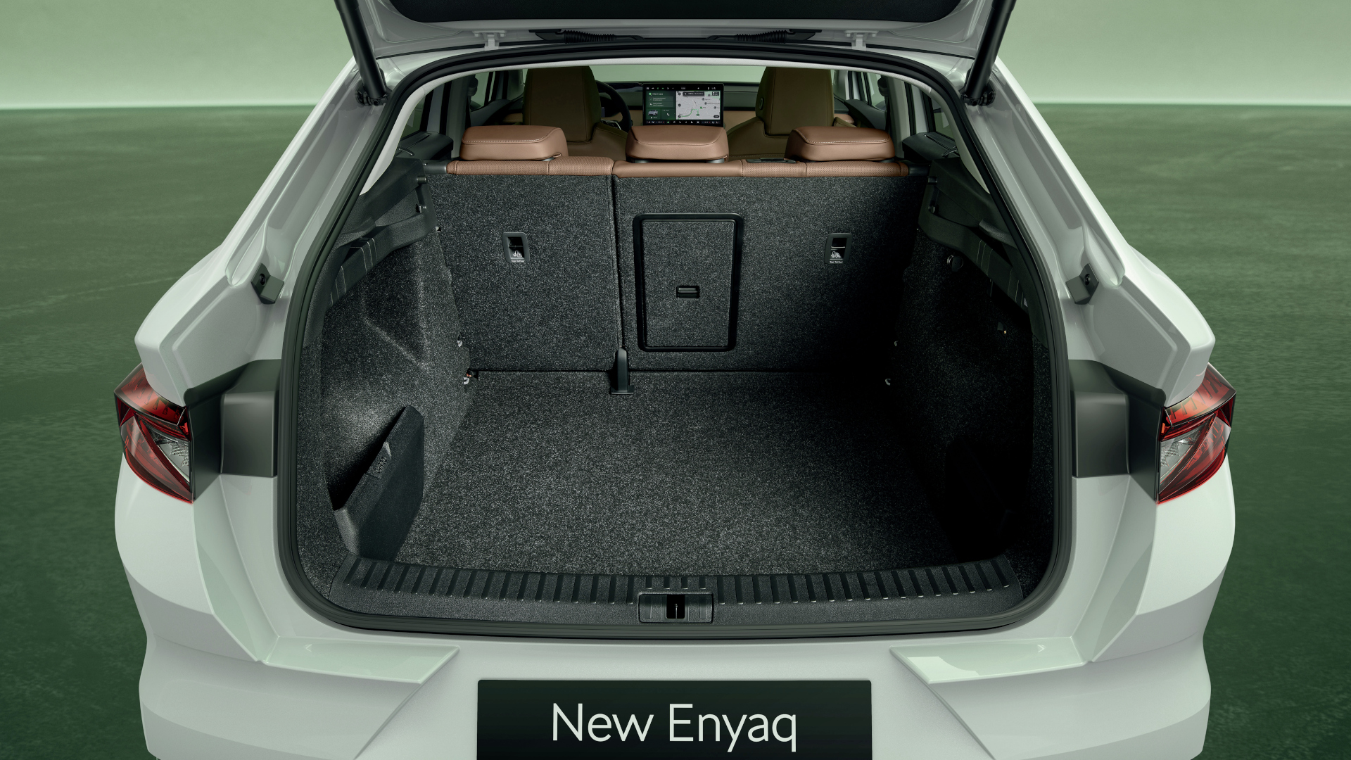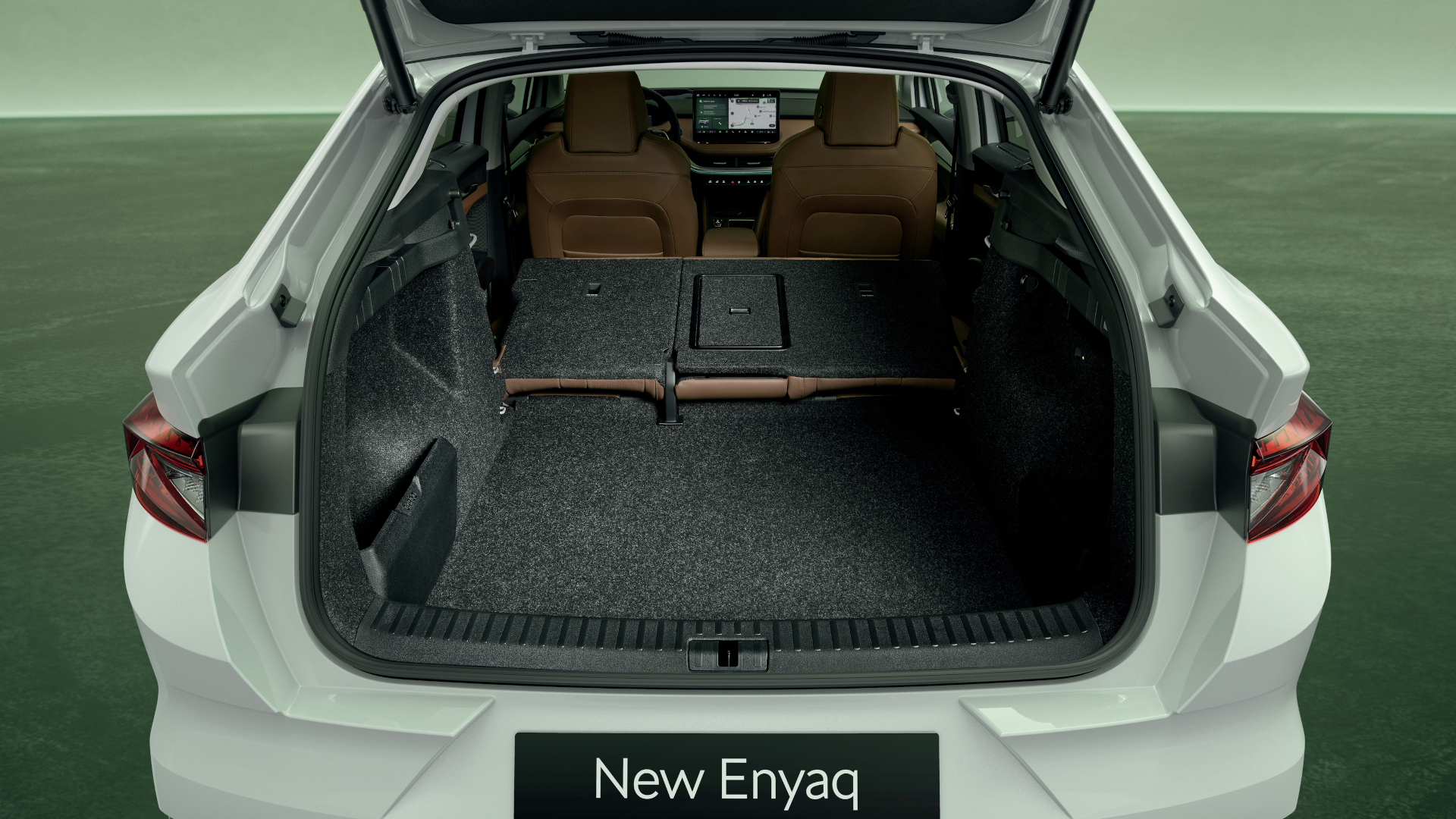 Der Fahrkomfort ist sehr hoch, trotz unterschiedlicher Fahrmodi sollten Kund:innen aber keine allzu sportlichen Auswüchse erwarten. Das Platzangebot im Innenraum ist hervorragend und unterscheidet sich trotz Coupé-Dachlinie kaum vom herkömmlichen Škoda Enyaq. Vorne sitzt es sich sehr gut, auch hinten reicht es bis zu einer Körpergröße von 1,90 Meter. Der Kofferraum ist mit 570 bis 1.610 Liter auf dem Niveau eines Mittelklasse-Kombis.
