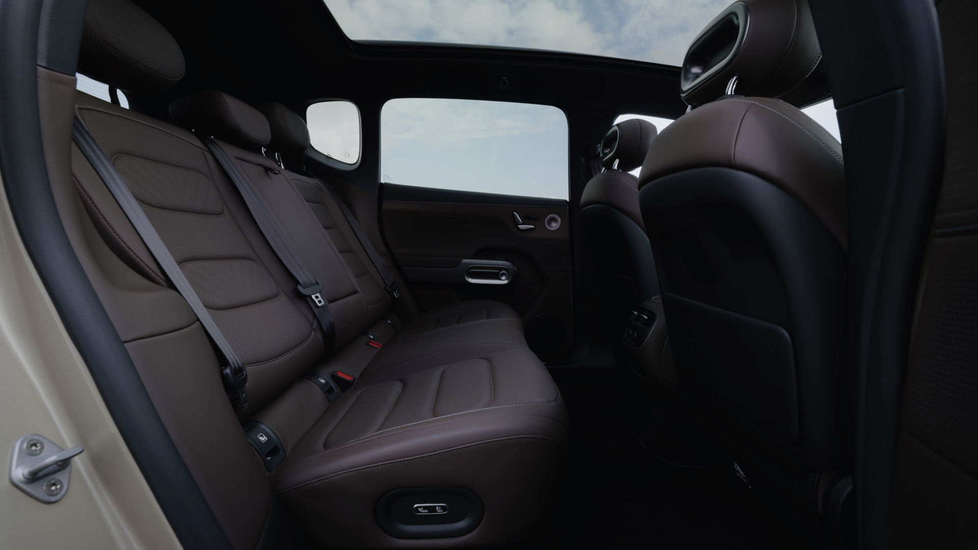 Der Innenraum ist ein echtes Highlight. Die Kopffreiheit ist vorn wie hinten großzügig, selbst Personen über 1,90 m stoßen nicht an die Decke – das verdankt man auch dem fast ebenen Boden und dem großen Glasdach. Die Beinfreiheit im Fond ist überdurchschnittlich, selbst bei vorgeschobenen Vordersitzen bleibt noch Luft nach vorn. Die Rückenlehnen hinten lassen sich elektrisch verstellen, was in dieser Klasse ein echtes Alleinstellungsmerkmal ist.