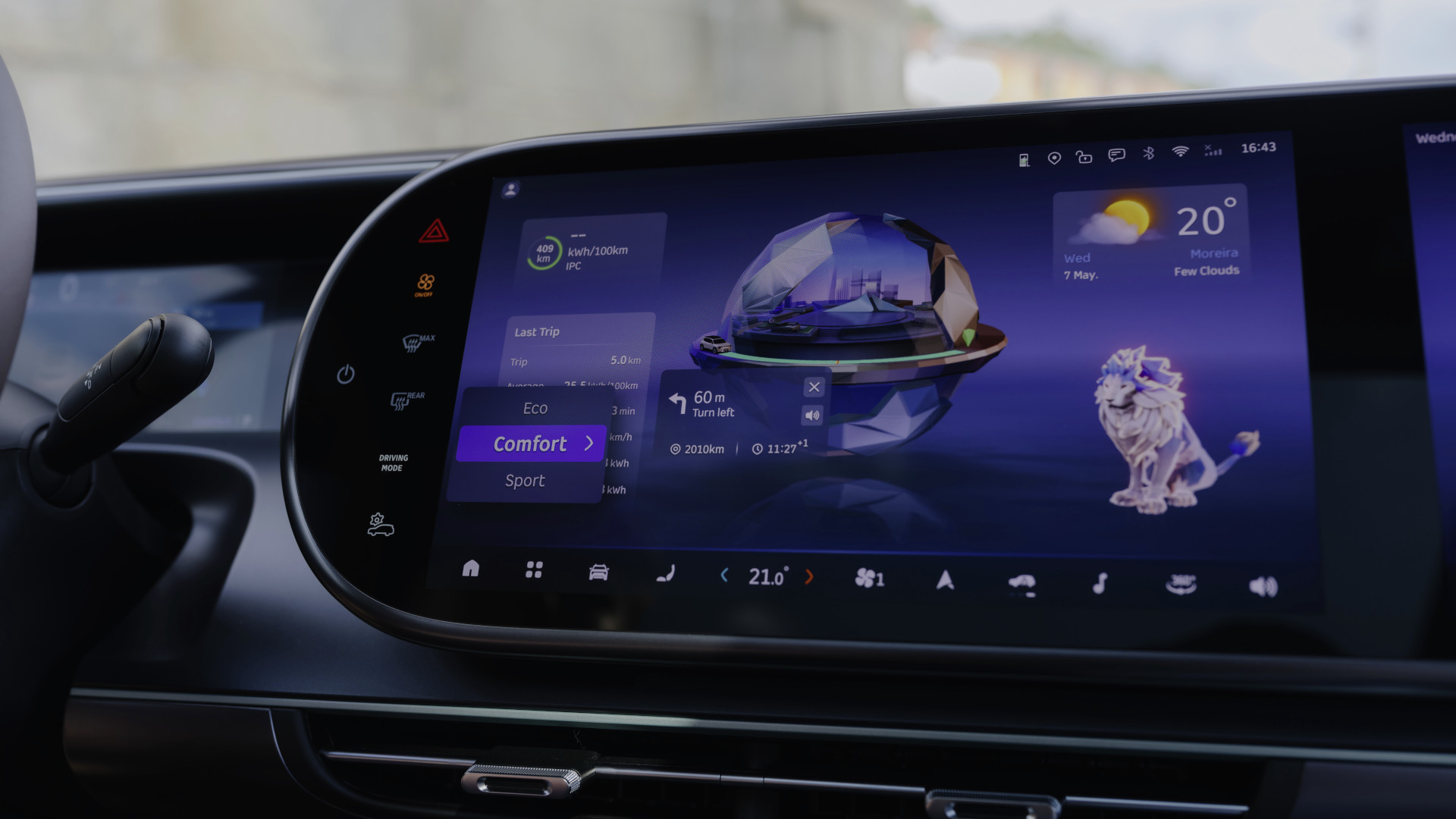 Das Cockpit ist ansonsten klar strukturiert und setzt auf eine fahrerorientierte Gestaltung. Der zentrale Touchscreen mit OLED-Technologie misst 13 Zoll, liefert gestochen scharfe Bilder und reagiert schnell auf Eingaben. Hinzu kommen ein 10,25 Zoll digitales Kombiinstrument sowie – je nach Ausstattung – ein optionales 13-Zoll-Display für den Beifahrersitz. Letzteres lässt sich nur im Stand nutzen, erkennt aber per Kamera, ob die Person auf dem Fahrsitz hinüberschaut, und schaltet sich dann automatisch ab – ein nettes Detail, das zur Sicherheit beiträgt.