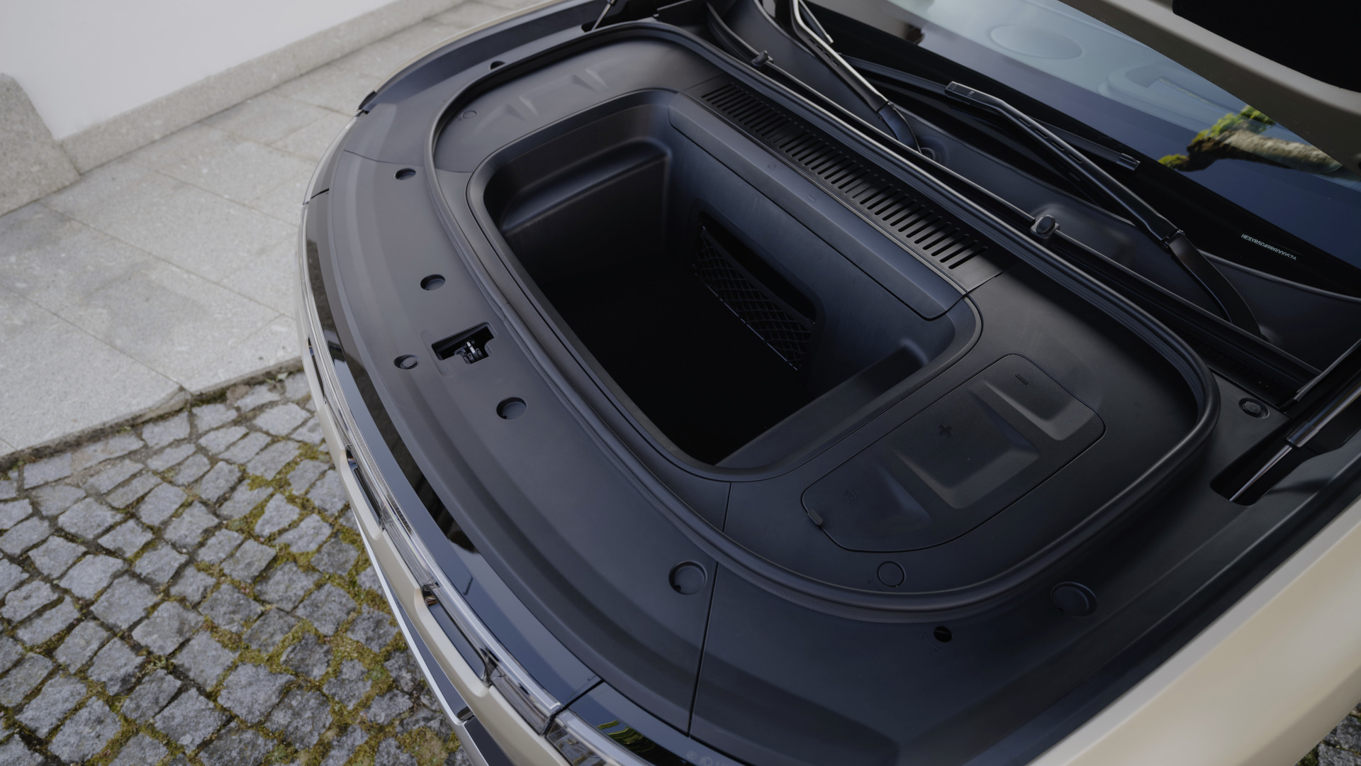 Vorn unter der Haube findet sich ein kleiner Frunk mit 47 Litern Volumen (beim Allradmodell) – ideal für Typ-2-Kabel oder eine mobile Wallbox. Beim Heckantrieb-Modell sind es sogar 72 Liter.