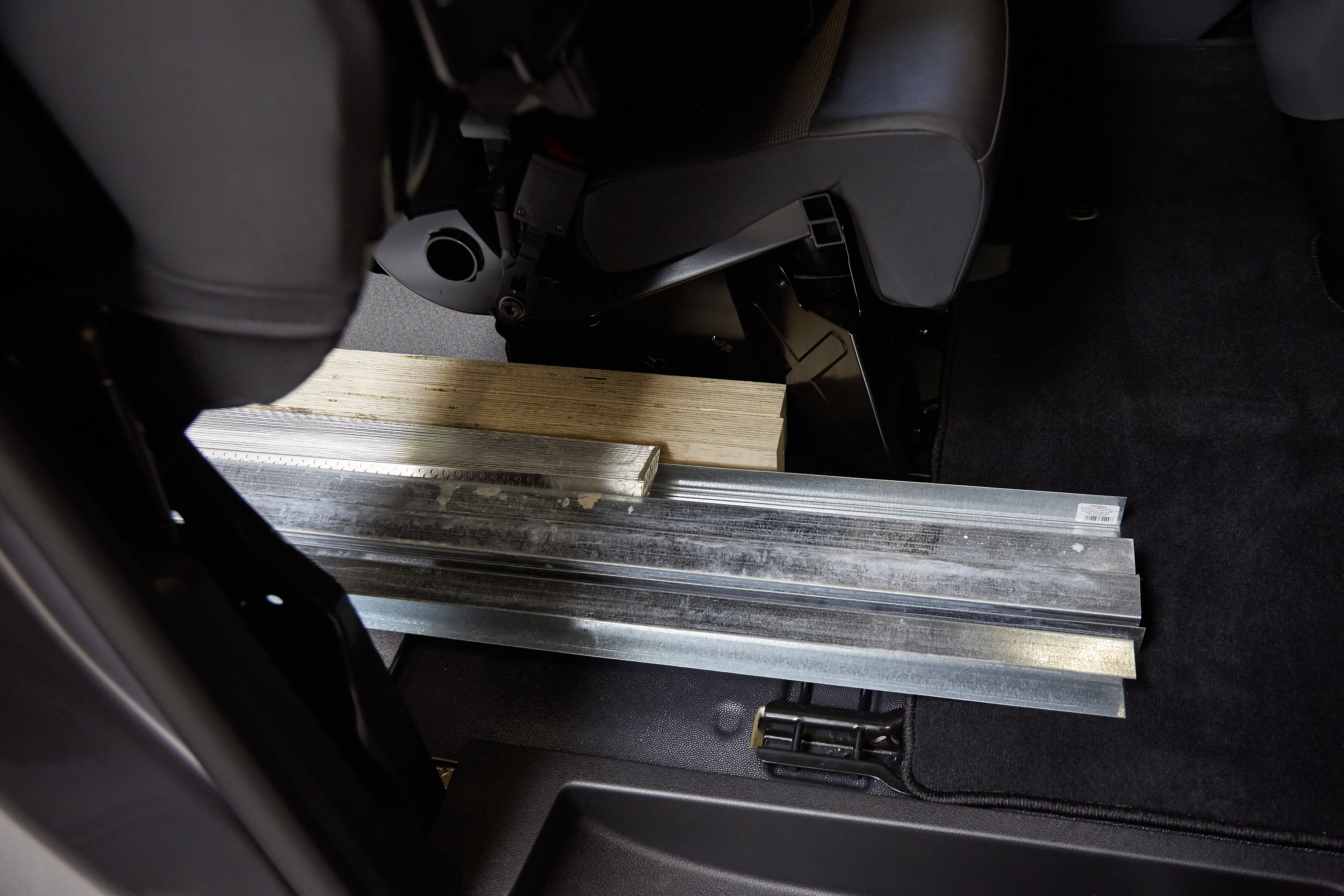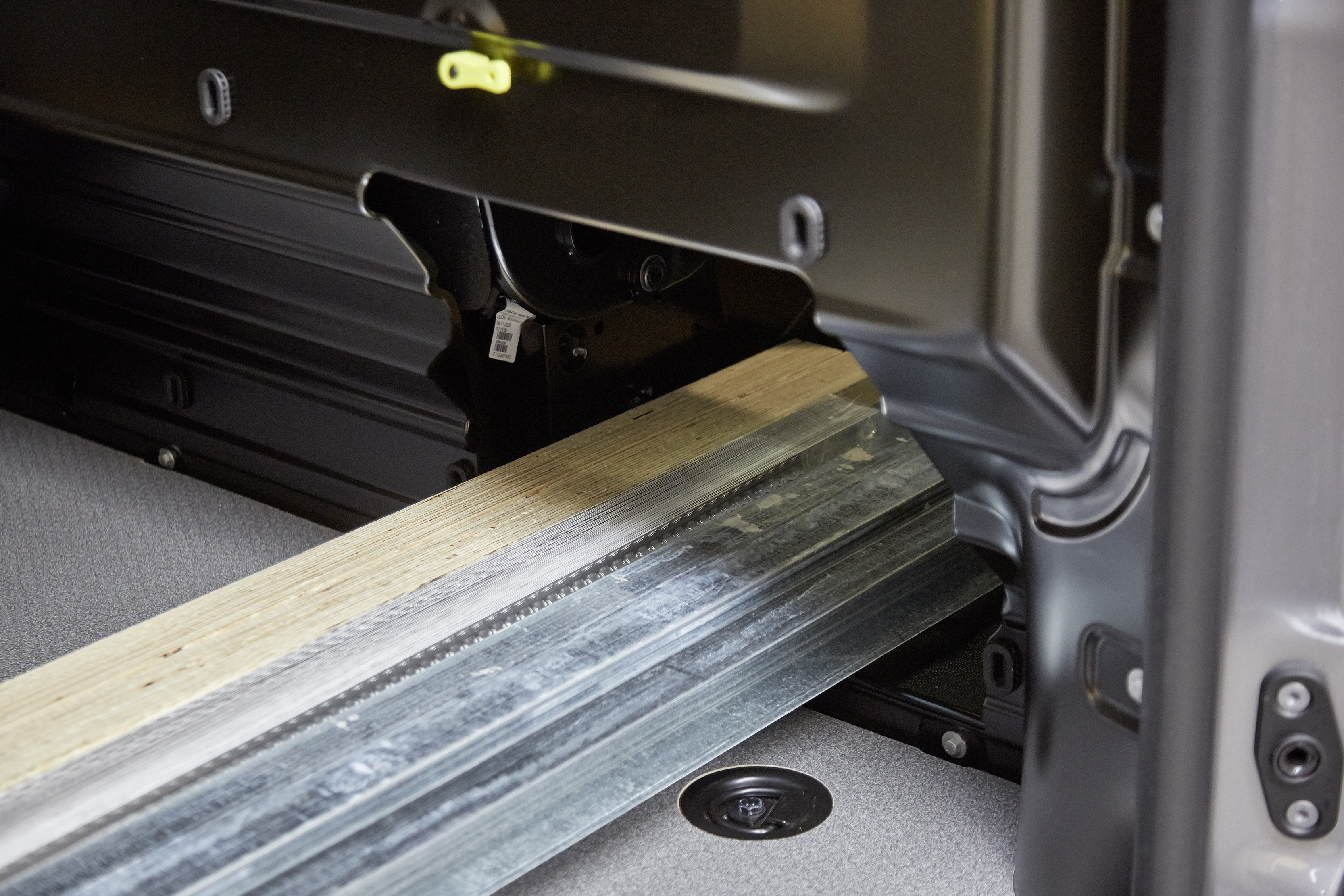Dieser leere Kasten ist mit Verrzurrungshelfern ausgestattet und ermöglicht es der Kundschaft, die Transportgüter auf dem Boden zu fixieren. Für die Combi-Variante wird der Rückkasten mit Rückbänken befüllt. Dann können neun Passagier:innen im Inneren des Wagens Platz nehmen.