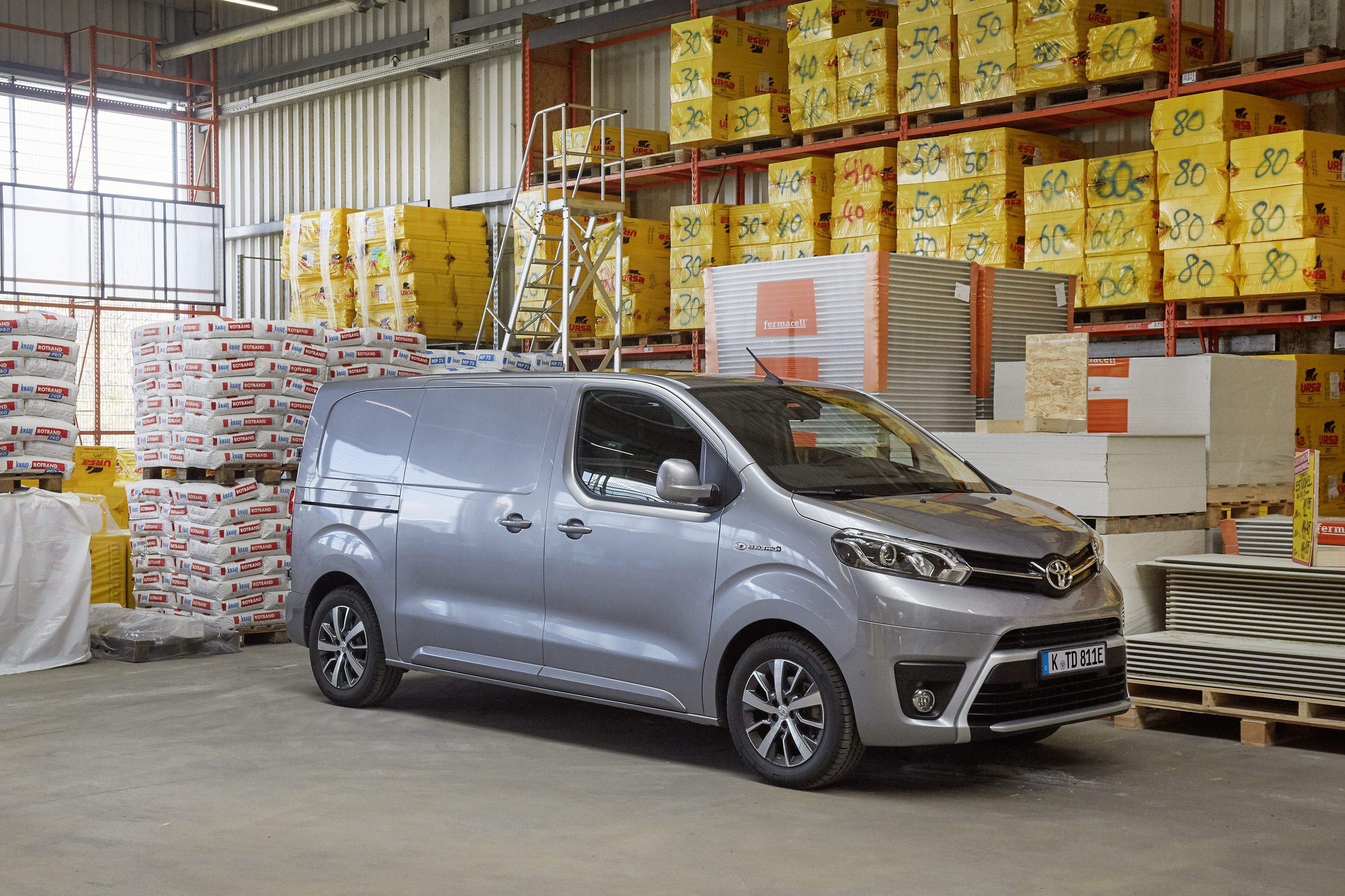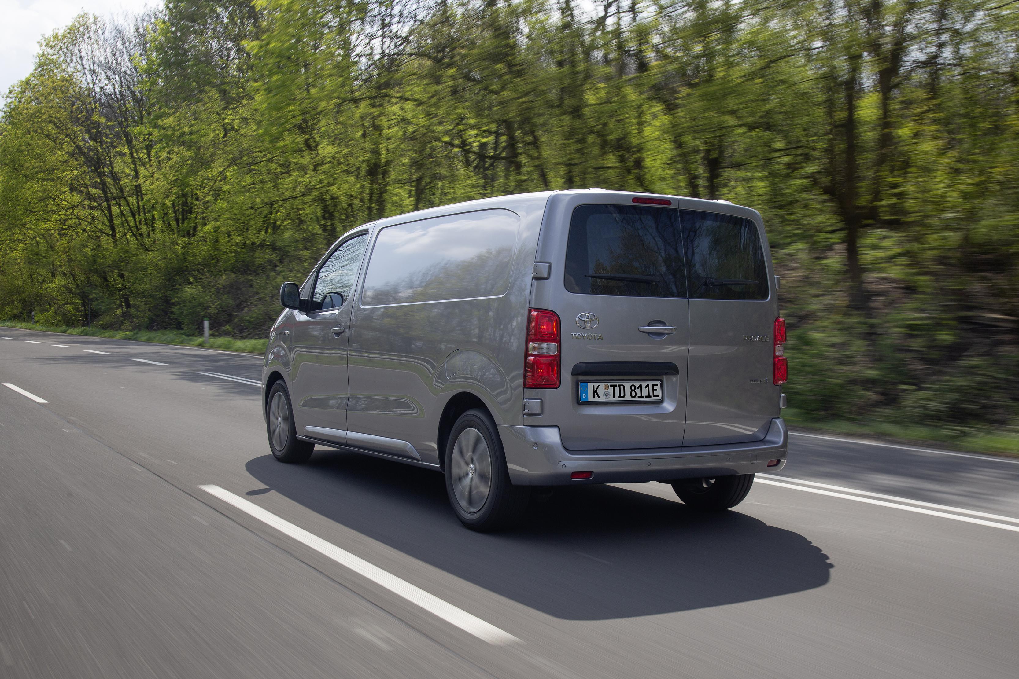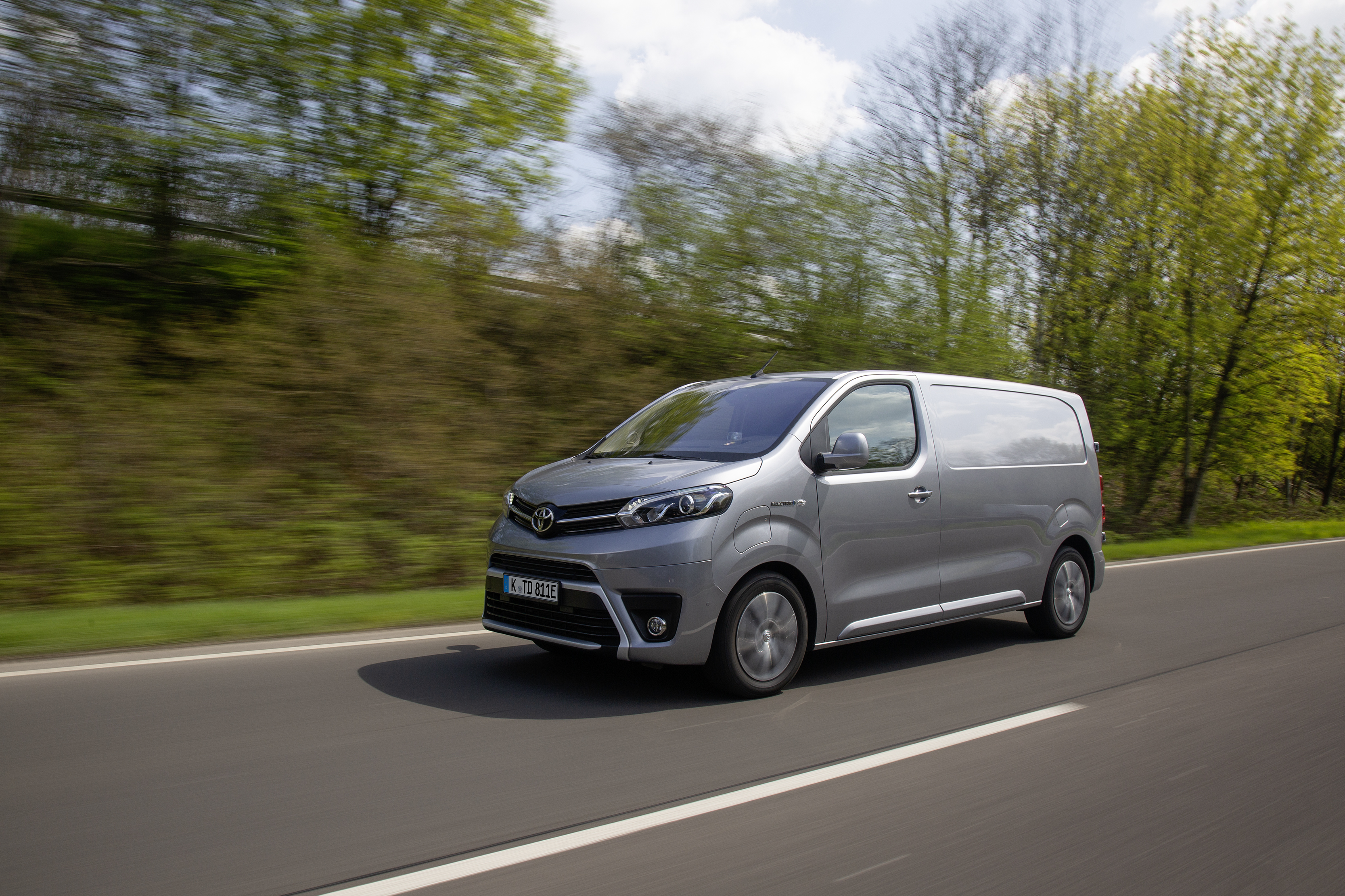 Wer rein elektrisch fahren will, der greift einfach zum Toyota Proace Electric. Der Elektro-Transporter hat eine Reichweite (WLTP-Norm) von 318 Kilometern.