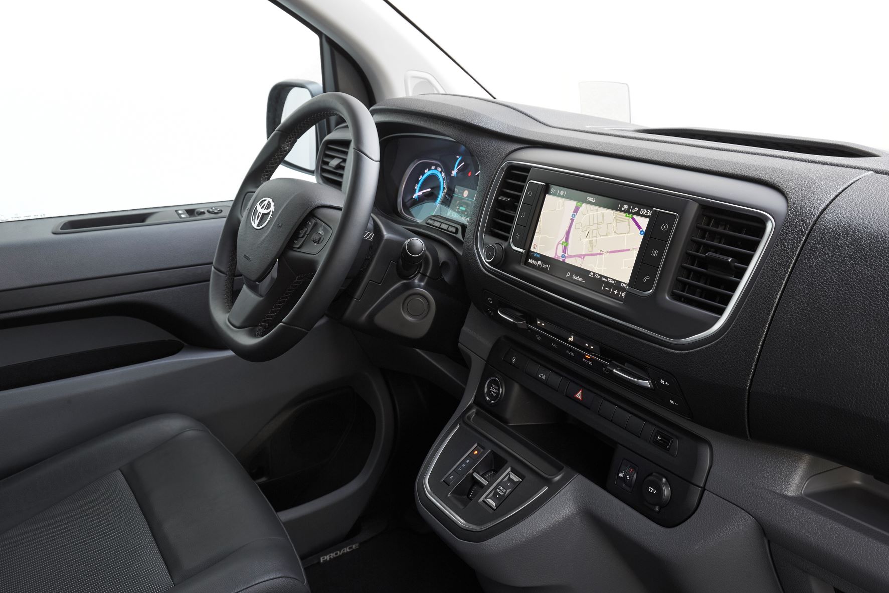 Praktisch ist auch die Smart Cargo-Funktion: Sie kombiniert ein mobiles Büro, einen aufrecht klappbaren Vordersitz und eine Smart-Cargo-Durchlade-Schottwand. Damit steigert der Toyota Proace weiter die Flexibilität.