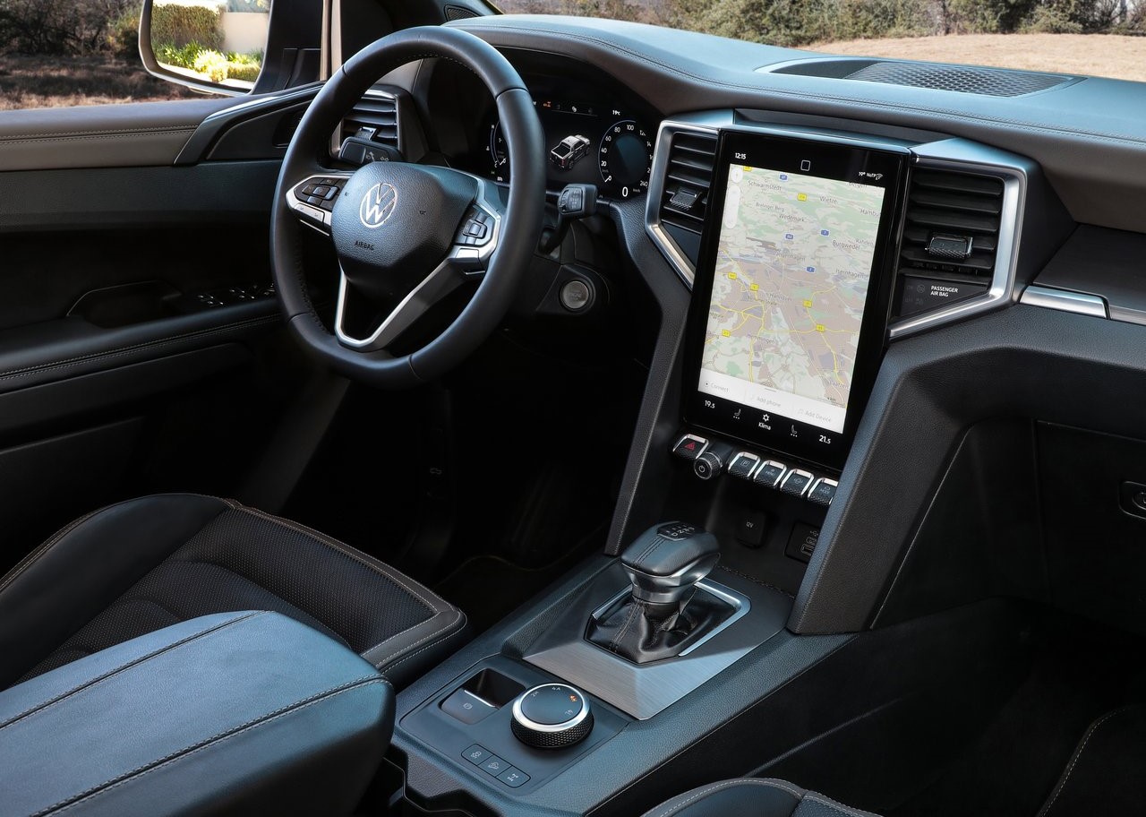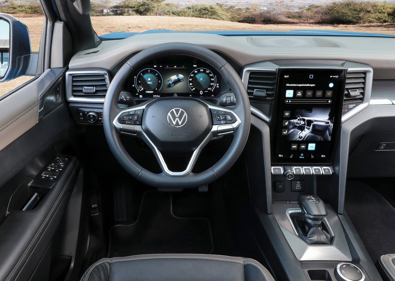 Nicht nur von außen kann man unmittelbar auf die Familienbande von VW Amarok und Ford Ranger schließen. Das digitale Cockpit und den hochkant stehenden Touchscreen kennt man bereits vom 2022 vorgestellten Ford Ranger. Im Amarok präsentieren sich das Cockpit und Interieur allerdings im typischen VW Look.