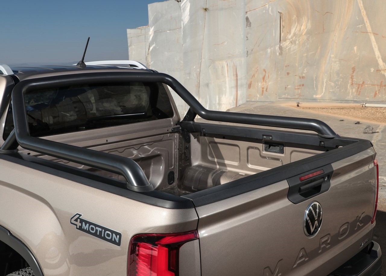 Hier bemerkt man die Erfahrung von Ford, denn die maximale Nutzlast des Amarok wuchs mit dem Plattformwechsel auf beinahe 1,2 Tonnen und die Dachlast auf 350 kg. Auf der 1,62 Meter langen Pritsche findet wie zuvor eine Euro-Palette Platz.