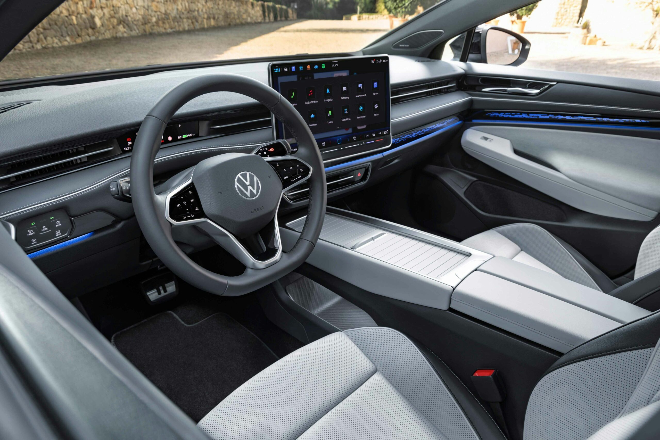 Neu ist auch das Infotainmentsystem MIB4, da jetzt einen 15-Zoll-großen Touchscreen hat, welcher optisch freistehend ist. Der Sprachassistent IDA soll jetzt perfektioniert worden sein und beantwortet durch die Anbindung an ChatGPT auch Fragen.