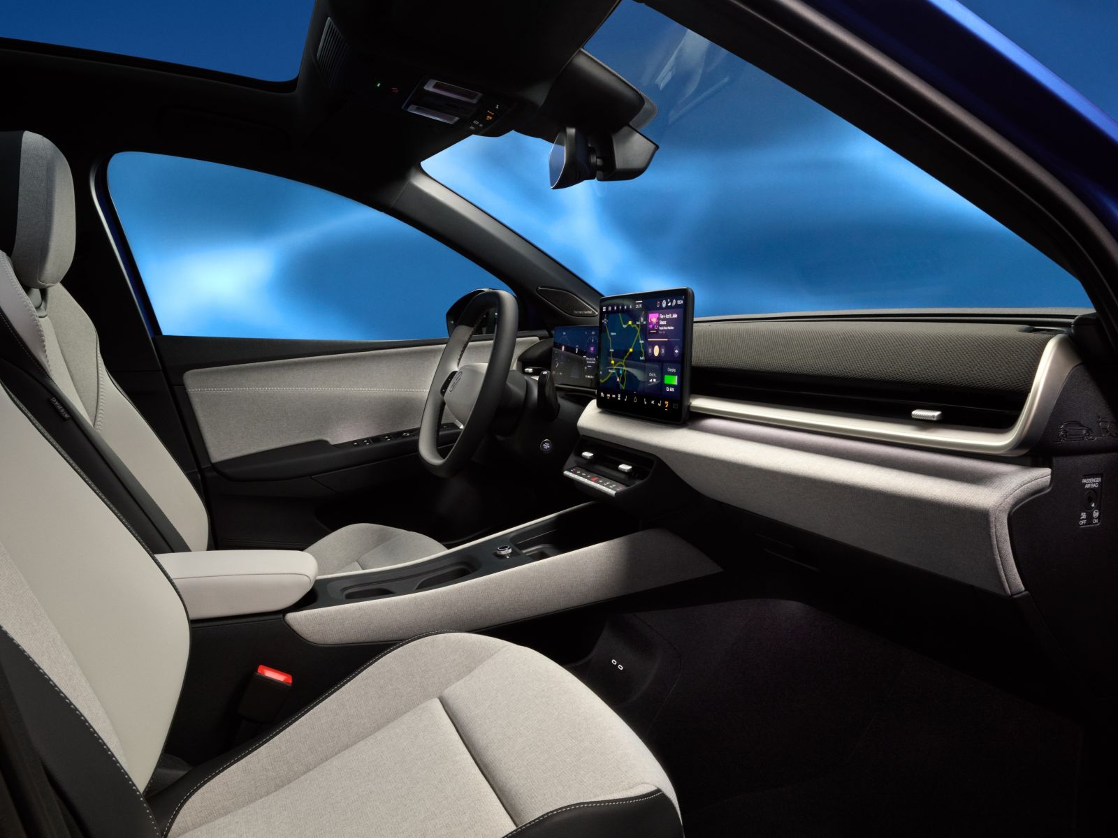 Auf den ersten Bildern wirkt der Innenraum des VW ID. Polo einladend und aufgeräumt. Eine öde Hartplastiklandschaft muss keiner befürchten, denn das Armaturenbrett ist teils mit Stoff überzeugen – genauso wie die Türinnenseiten. Das schafft eine wohnliche Atmosphäre. Auch zu erkennen: Der ID. Polo erhält neu gestaltete Türöffner, die wir bereits aus dem aktuellen T-Roc kennen. Sie sind direkt in die Armauflagen integriert.