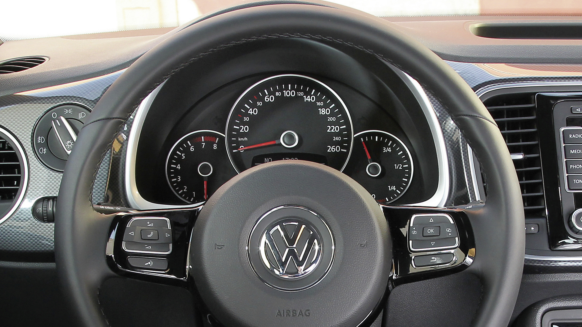 Das Cockpit des Beetle präsentiert sich so oder so gelungener als das des New Beetle, in dem man sich hinter dem ewig tiefen Armaturenbrett unter dem kuppelartigen Dach selbst mit 1,90 Meter Körpergröße noch ziemlich verloren vorkam. Vorne herrscht viel Platz und man blickt auf einfach abzulesende Instrumente, die von soliden Kunststoffen umgeben sind.