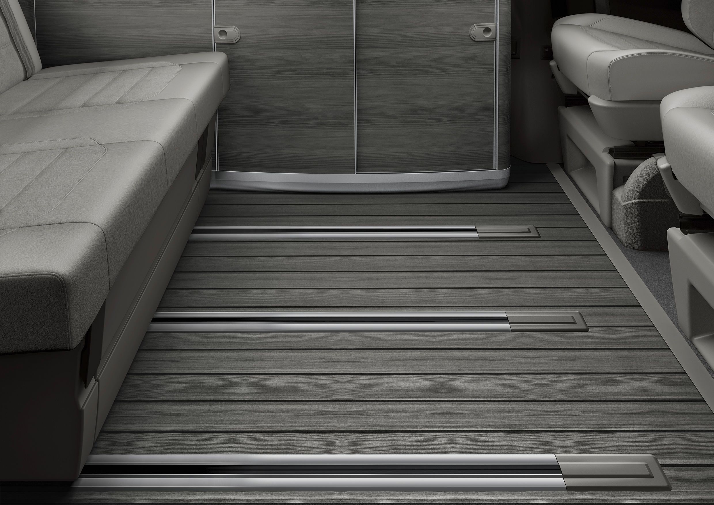 Mit der Überarbeitung erhielt der California frische Möbeldekors, neue Bedienschalter und Bodenbeläge. Der Innenraum wirkt mit verstellbarem LED-Ambientelicht wohnlicher. Bei dem sachlichen Chic, der soliden Verarbeitung und dem einfachen Handling der Campingkomponenten wie Gas- und Wasserzufuhr, Kühlbox, Standheizung und Dachzelt blieb es.