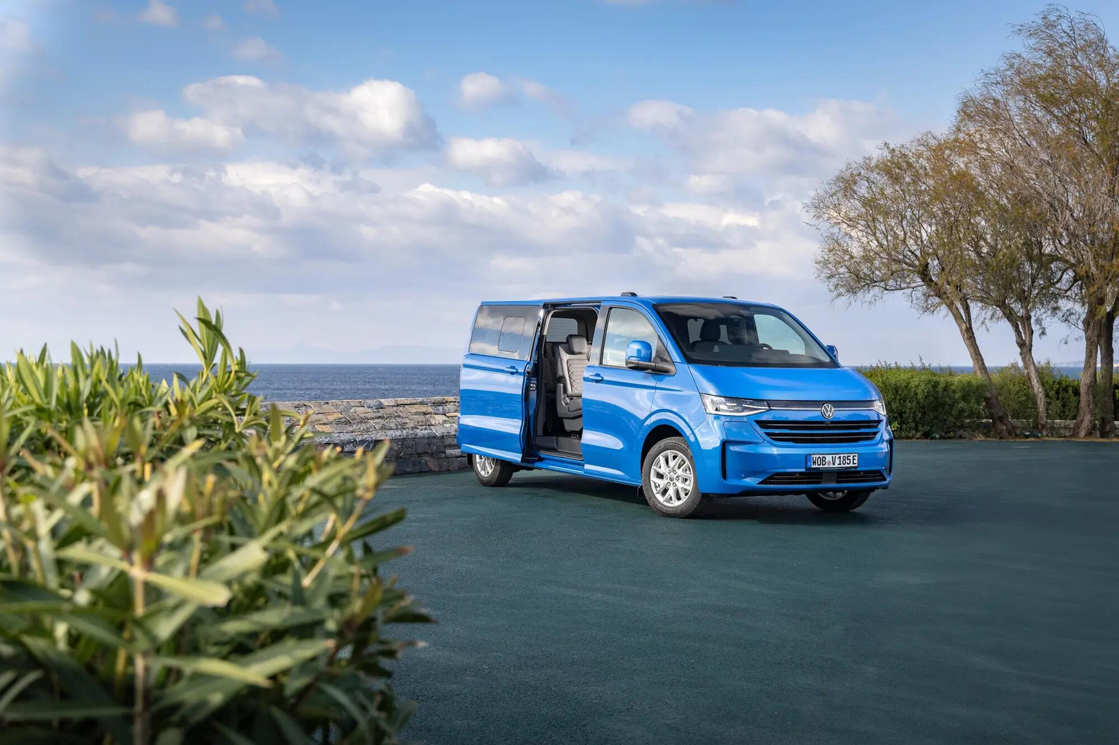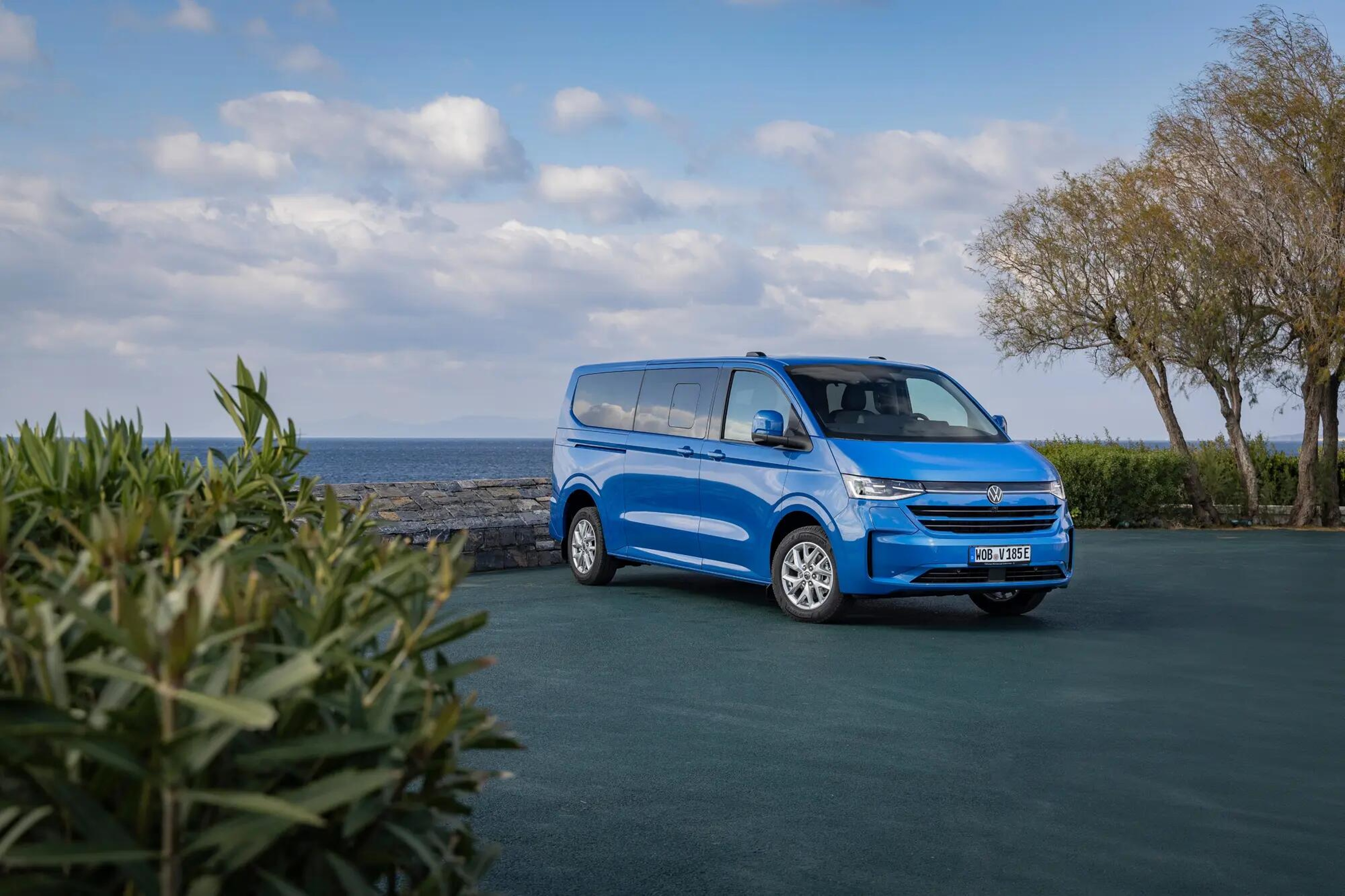 Der VW T7 ist der erste VW Bus auf Ford-Basis. Im elektrischen e-Caravelle, der bis zu neun Personen Platz bietet, macht sich das Gleichteile-Konzept positiv bemerkbar.