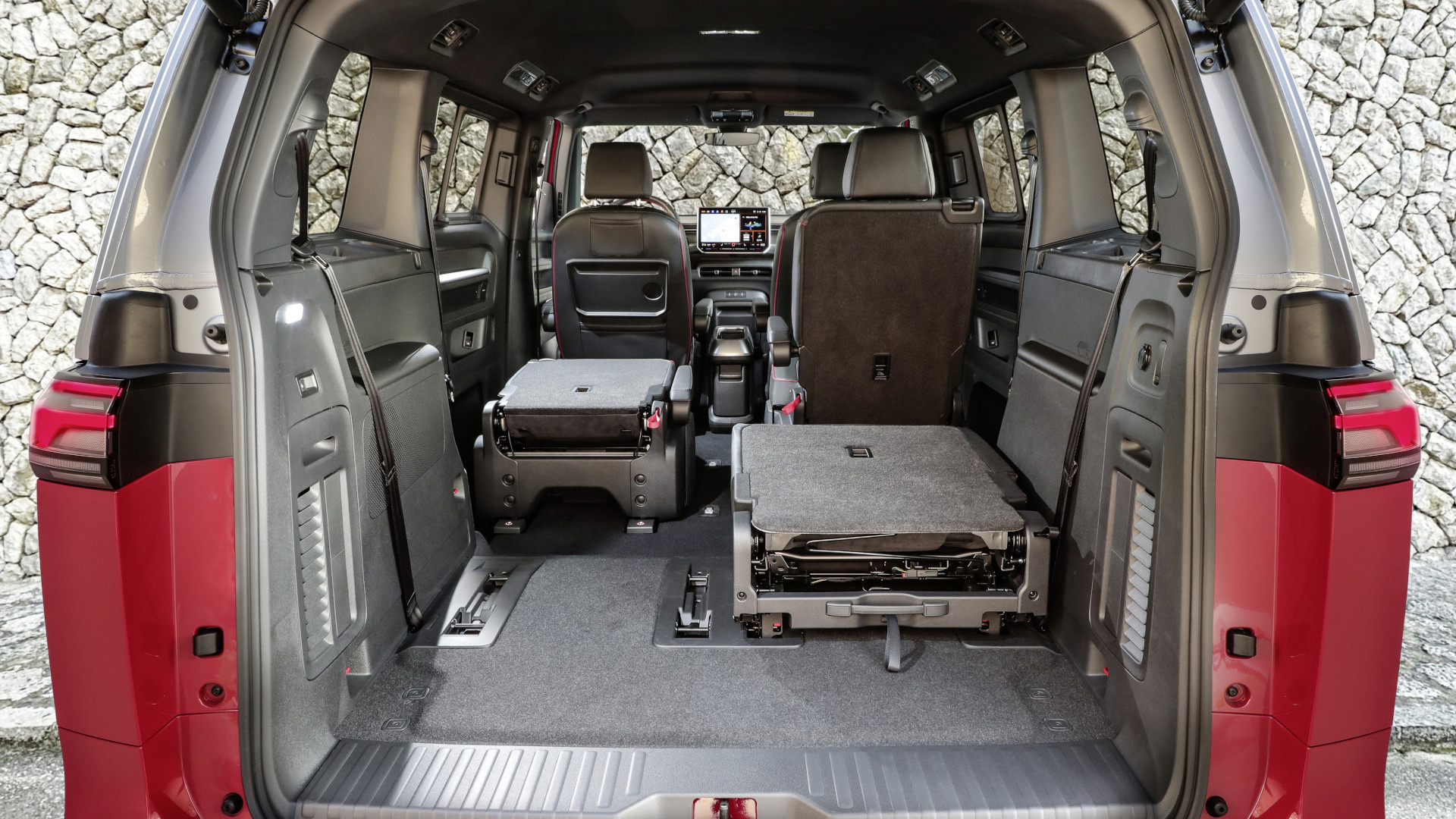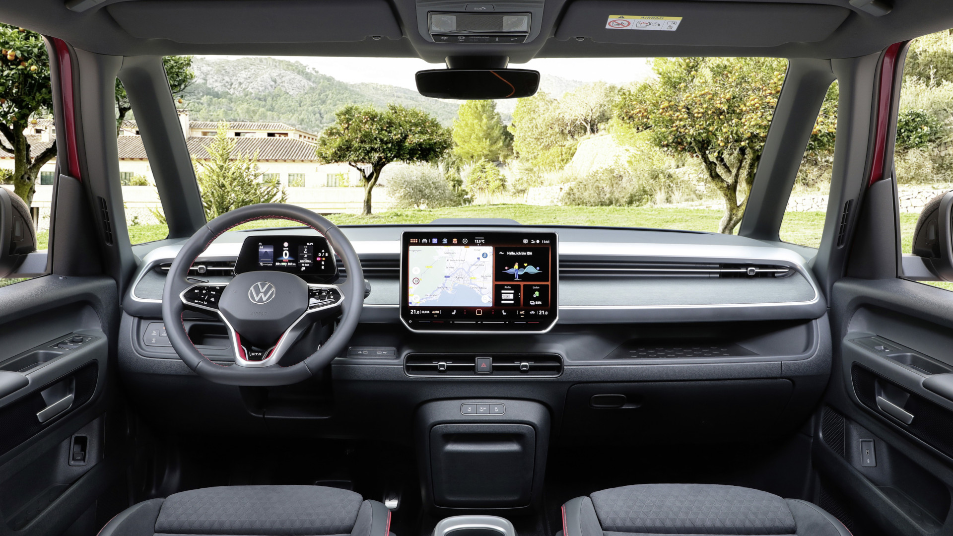 Dieses GTI - pardon GTX-typische Kirschrot setzt sich auch bei den Ziernähten im Interieur in Kombination mit schwarzen Grundtönen und sportlichen Chrom-Verzierungen fort. Apropos Innenraum: Der ID. Buzz GTX ist wahlweise als Fünf- oder Sechssitzer bestellbar, mit langem Radstand sogar auch als Siebensitzer.