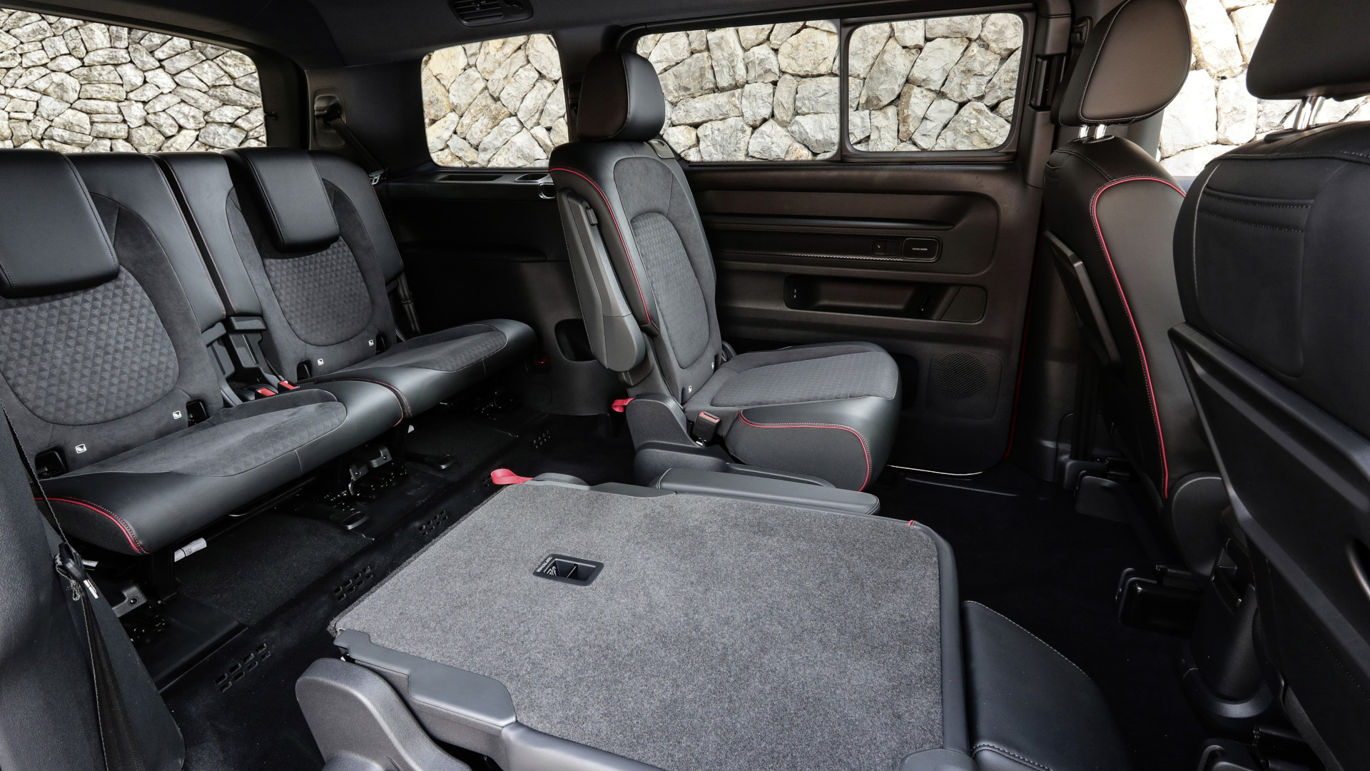 Der Innenraum überzeugt mit seiner Variabilität und Flexibilität: Wahlweise als 5-, 6- oder 7-Sitzer, die Sitze teilweise herausnehmbar (dritte Sitzreihe) oder zumindest flexibel verschieb- und umklappbar (zweite Reihe), das bietet wirklich viele Nutzungsmöglichkeiten. Die GTX-Sitze sind hervorragend komfortabel und dennoch sportlich designt, auch das ganze Innenraum-Design mit den roten Ziernähten und dem schwarzen Dachhimmel wirkt wie aus einem Guss.