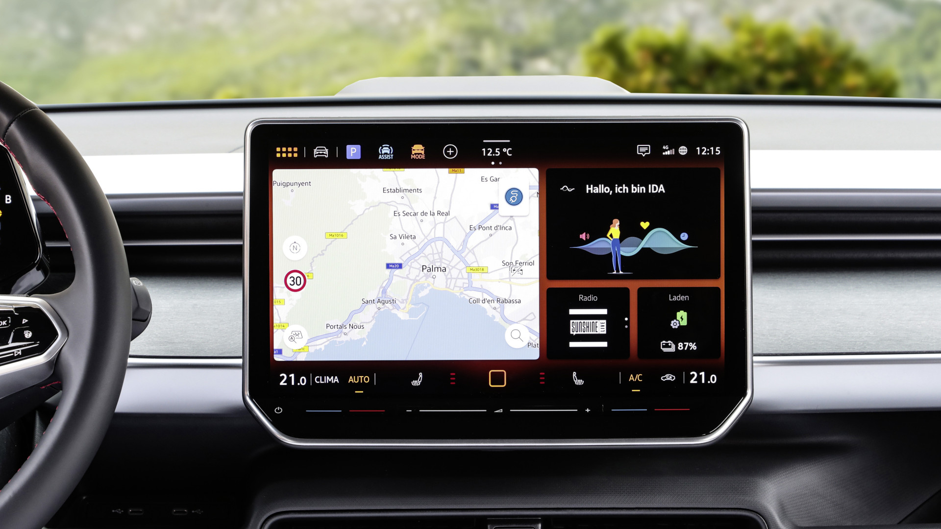 Doch sehr positiv ist das optionale Head-Up-Display zu erwähnen, das ideal justiert werden kann und einwandfrei funktionierte. Der Mini-Monitor direkt vor dem Lenkradbereich gibt nur die nötigsten Daten wieder, die wichtigsten Funktionen müssen dagegen über das Touchmenu im 12,9-Zoll großen Mittelmonitor bedient werden, was definitiv viel zu sehr vom Fahren ablenkt. Viele Funktionen kann man besser per Sprachbefehl ansteuern, wobei auch hier momentan noch die manuelle Taste am serienmäßigen Multifunktions-Lenkrad zuverlässiger funktioniert als das akustische “Hallo IDA.”