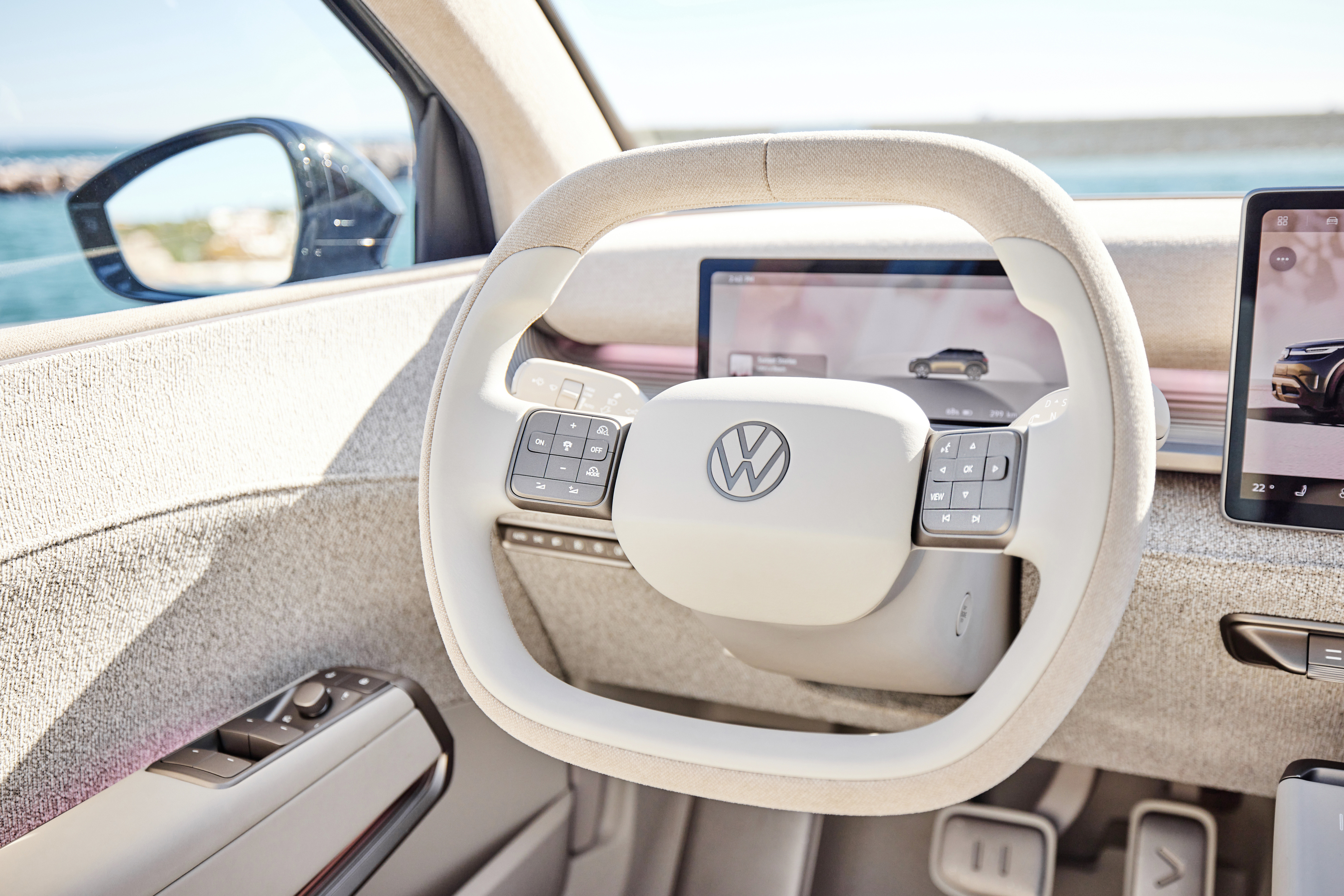 Beim Innenraum-Design setzt VW auf eine wohnlichere Anmutung. Statt harter Plastikflächen dominieren textile Bezüge und weichere Materialien, die dem Cockpit eine freundlichere Atmosphäre geben. Die „schwebende“ Mittelkonsole bleibt erhalten, wirkt jedoch funktionaler. Ob die Serienqualität tatsächlich spürbar über dem Niveau früher ID.-Modelle liegt, wird sich erst im Test zeigen – der Anspruch ist zumindest klar formuliert.