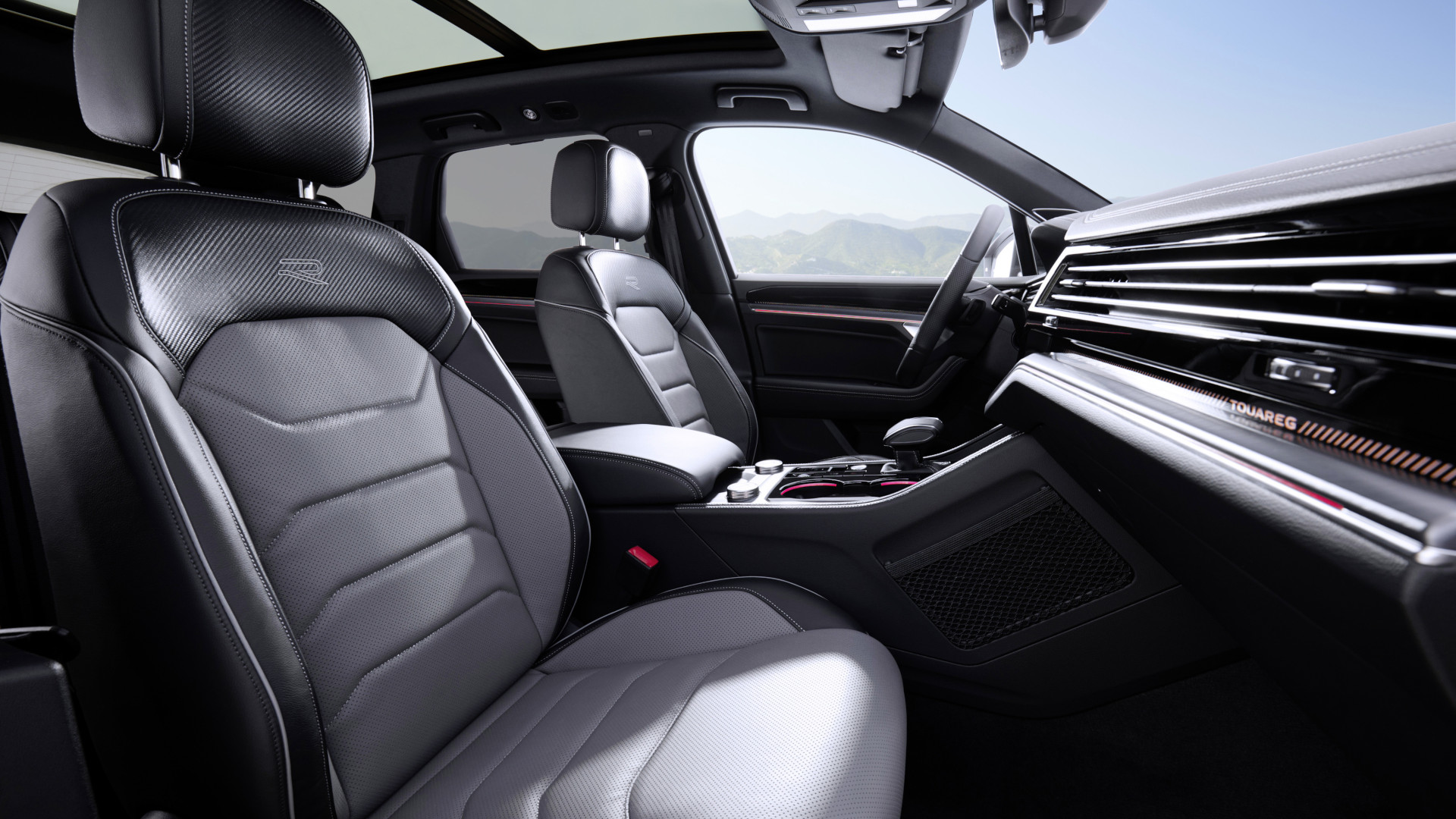 „Oberklasse“ muss sich nicht nur im Preis widerspiegeln, sondern auch im Innenraum. Hier zeigt Volkswagen im Touareg R, was der Konzern zu bieten hat. Dazu gehört das Panoramadach (aufpreispflichtig), das sich bis zum Heck zieht. Im Gegensatz zu vielen Herstellern lässt es sich öffnen oder per Blende verdunkeln. Das ist im Sommer bei hohen Temperaturen nicht zu unterschätzen. Ansonsten sind Cockpit und Interieur aus den anderen Modellen des VW Touaregs bekannt, wurden aber noch einmal einer speziellen R-Behandlung unterzogen.