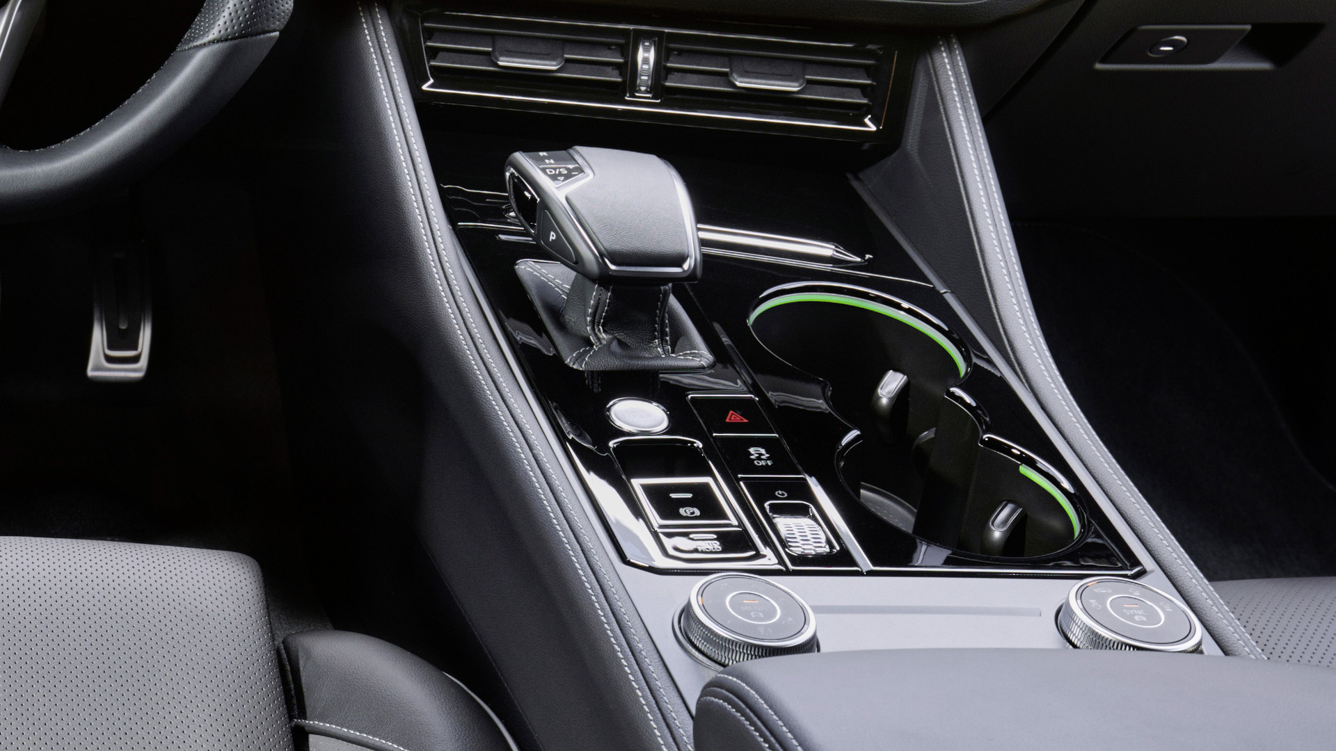 In den Türen im Fond finden sich kleine tiefe Fächer, an den Rückseiten der Vordersitze Netze, um beispielsweise Zeitschriften zu verstauen. Vorne in den Türen sind die Fächer etwas größer und bieten eine Einbuchtung für Becher oder Flaschen sowie eine weitere, schmalere für andere Dinge, die bei der Autofahrt mit müssen. Im Mitteltunnel gibt es zwei weitere Becherhalter und eine induktive Ladeschale für das Smartphone. Das Handschuhfach ist innen mit Samt bezogen, ebenso wie das große Fach unter der Armauflage. Hier finden sich zwei weitere USB-C-Anschlüsse für das Smartphone.