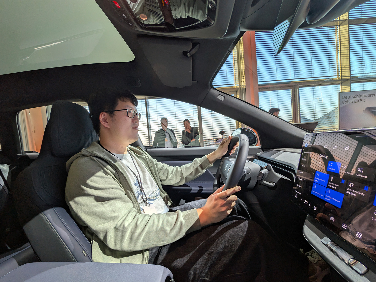 Aber genug vom Exterieur, setzen wir uns einmal in den neuen Volvo EX60 rein. Die neuen “Winglets” für die Türen sind einfach zu bedienen und öffnen sich durch leichten Fingerdruck. Manchmal musste ich zwar drei Finger spezifisch an den neuen Türgriff legen, aber nach ein bisschen Ausprobieren findet man rasch die nötige Stelle und den Druck zum Öffnen. Wenn man das Auto länger als einen Nachmittag hat, sollte das überhaupt kein Problem sein. Jetzt heißt es rein ins Auto.