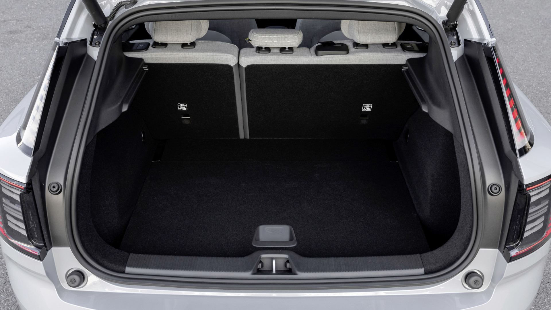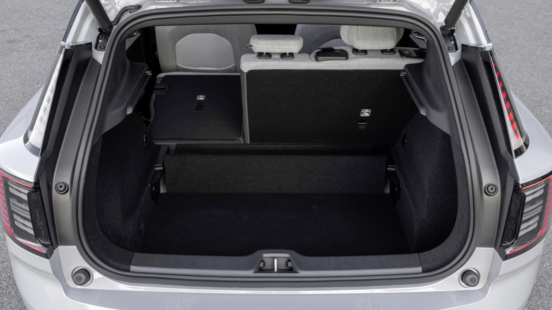 Unter der „Motorhaube“ findet sich im Volvo EX30 ein Frunk, ein kleines Fach von 7 Litern Volumen für die Ladekabel. Praktisch ist der variable Ladeboden des Kofferraums. Unter dem lässt sich die Gepäckraumabdeckung verstauen. Darüber öffnet sich im EX30 Plus und Ultra die elektrische Heckklappe.