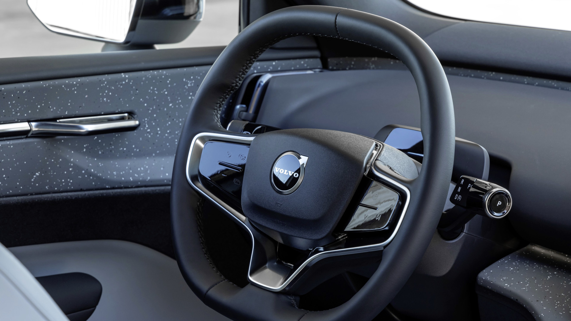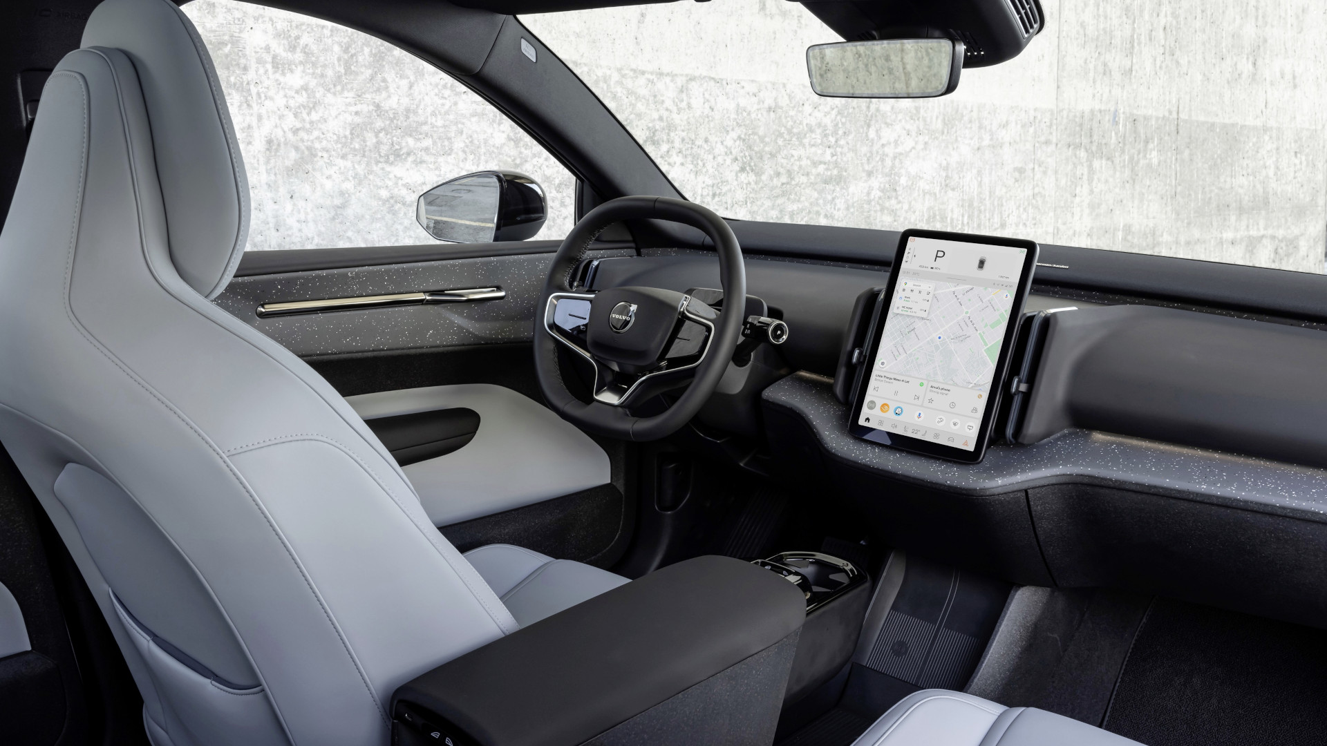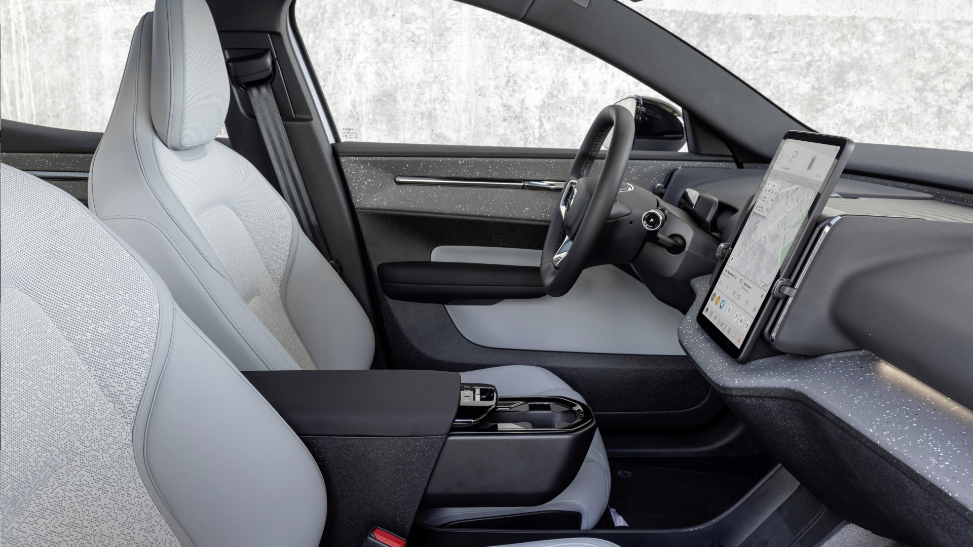 Das modernistische, etwas zu sehr auf den Zeitgeist schielende Bedienkonzept des Volvo EX30 offenbart im Cockpit und Interieur aber auch seine guten Seiten. Das Cockpit und der Innenraum wirken sehr aufgeräumt.
