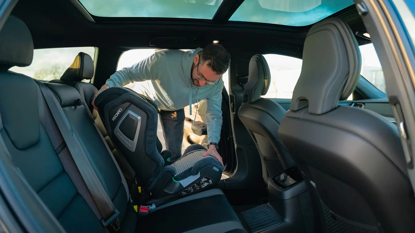 Der nächste Pluspunkt des Volvo V60 ist wie praktisch der Kombi ist. Obwohl er zu den kleineren Modellen von Volvo gehört und sich daher leicht auf der Straße manövrieren lässt, bietet er im Fond jede Menge Platz auch für sperrige Kindersitze wie der von Darrens Sohn. Und der riesige Kofferraum hat im Praxistest bei Darren bewiesen, dass er alles schlucken kann, was wer brauchte, von Fahrten zum Recyclinghof bis hin zu Wochenenden bei den Schwiegereltern.