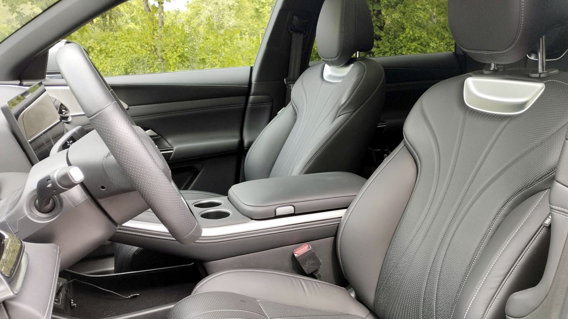 Die edel gepolsterten Vordersitze sind bequem. Der Beifahrersitz hinterlässt mit der ausfahrbaren Beinauflage den Eindruck eines 1. Klasse-Sessels im Flugzeug. Dem hat er allerdings die Sitzheizung, Sitzbelüftung und Memory-Funktion voraus.