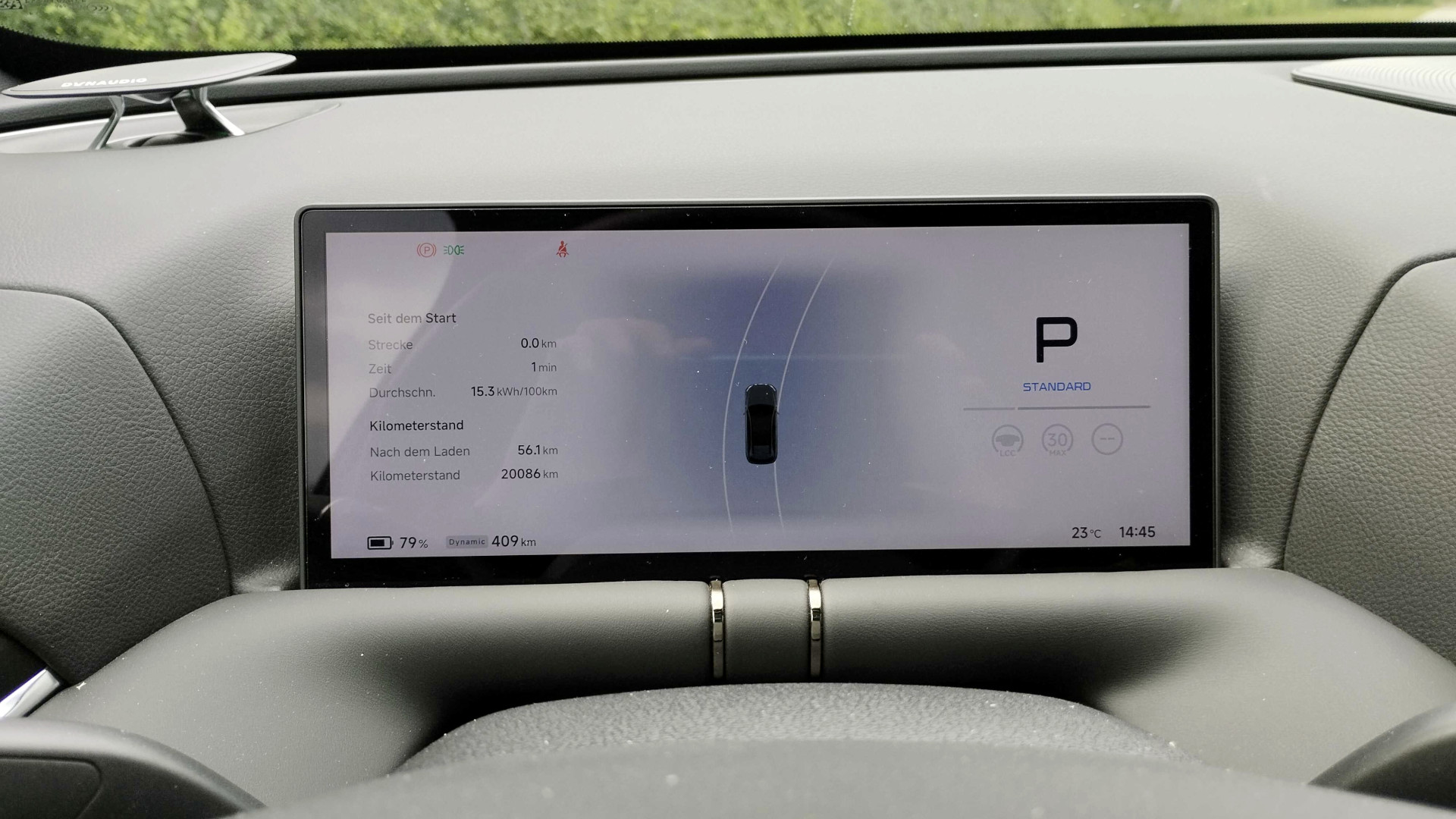Wer mit der Ladeplanung unterwegs ist, kann zudem von der automatischen Vorkonditionierung der Batterie profitieren, die pünktlich zum Erreichen des Ladestopps sicherstellt, dass der Akku die richtige Temperatur hat, um direkt die bestmögliche Ladeleistung abzurufen. Im unserem Test hängte sich die Vorkonditionierung allerdings mehrfach auf, wenn der Ladevorgang über das Fahrzeug beendet wurde. So blieb die Heizung oder Kühlung für die Batterie auch nach dem Ladevorgang noch aktiv und musste manuell über das Menü abgeschaltet werden.