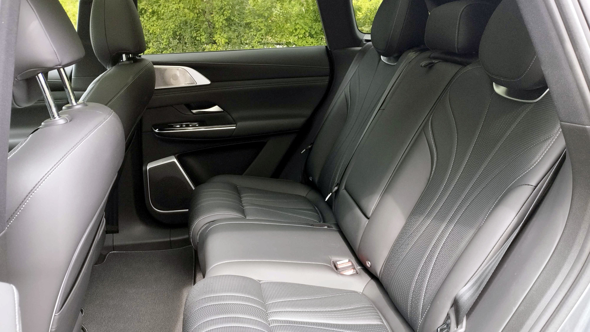 Man könnte die opulente Breite der Sitzbank auch zu dritt ausnutzen, aber zu zweit sitzt es sich hier hinten bequemer. Auf den äußeren hinteren Sitzplätzen genießt man, wenn das „Premium Comfort & Audio Packet“ mitbestellt wurde, auf der neigbaren Rückbank neben der Sitzbelüftung und Sitzheizung auch die Sitzmassage.