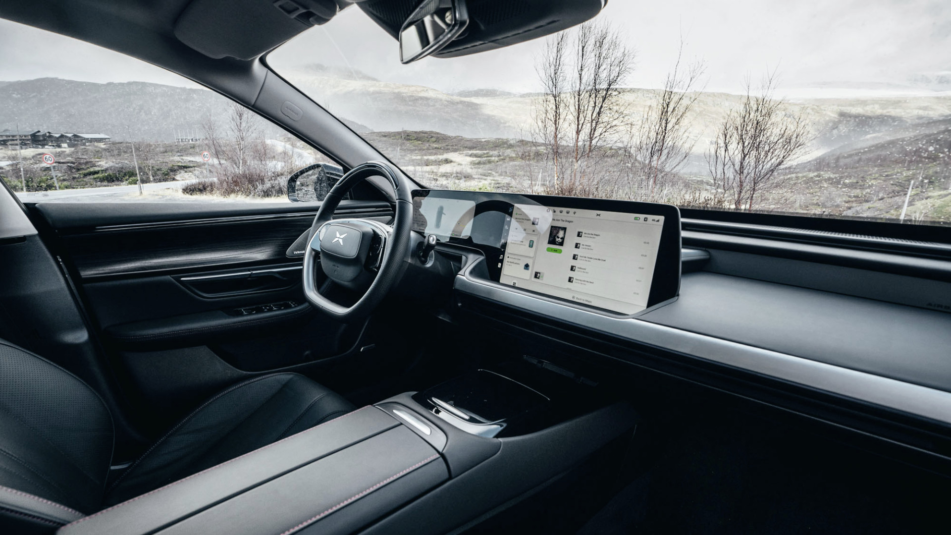 Moderne Technologie bedeutet im XPeng P7, dass nicht Teilsysteme einander zuarbeiten, sondern die Technik über einen zentralen Rechner gesteuert wird. Diese Software-Dominanz verhindert zwar nicht die Alterung des Fahrzeugs, aber die Software lässt sich wie bei einem Smartphone durch Updates auf dem neuesten Stand halten. Das haben XPeng P7 und G9 gemeinsam. Im Cockpit des P7 blickt man jedoch nur auf einen 15-Zoll-Touchscreen und nicht gleich auf zwei Screens nebeneinander wie im G9.